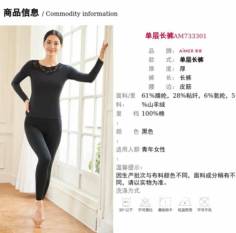 爱慕 Удерживающее тепло бархатное нижнее белье, кашемировое базовое термобелье, штаны