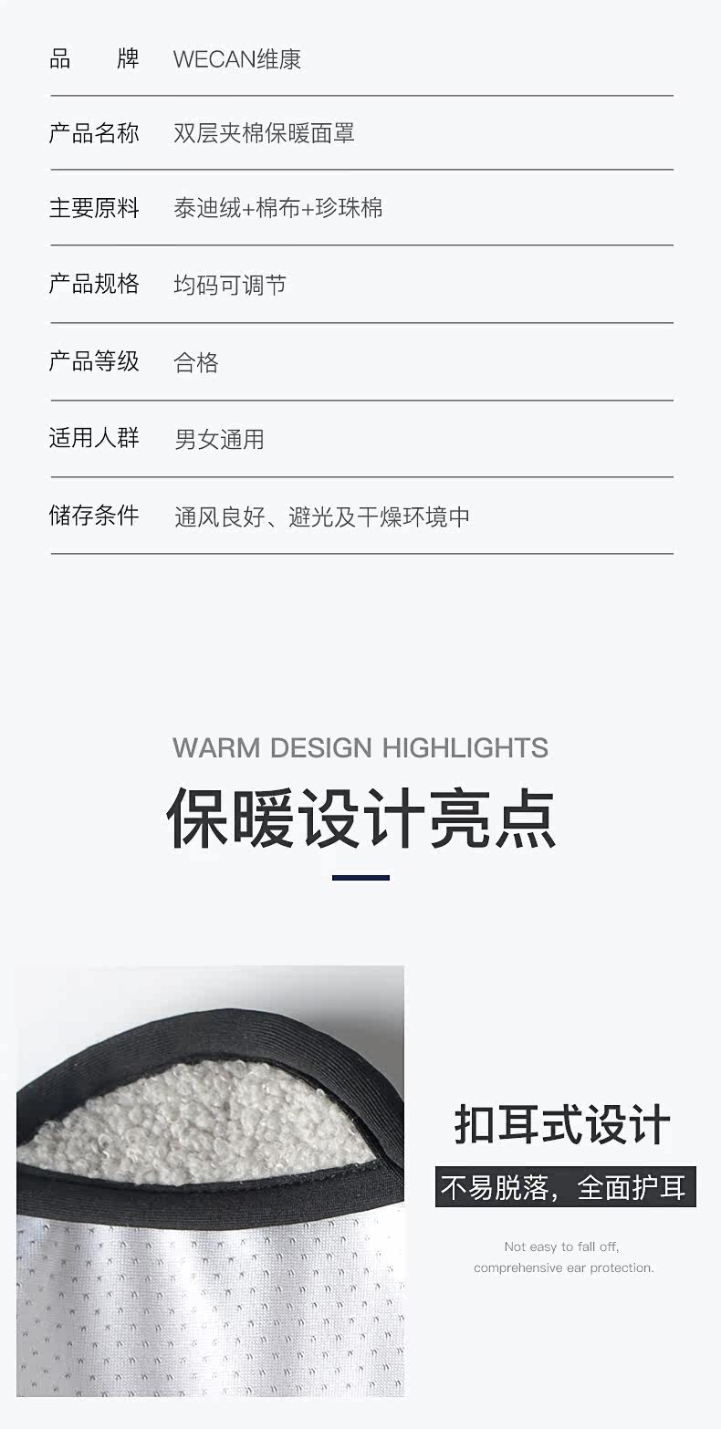 维康 Удерживающая тепло зимняя ветрозащитная дышащая демисезонная медицинская маска подходит для мужчин и женщин, увеличенная толщина