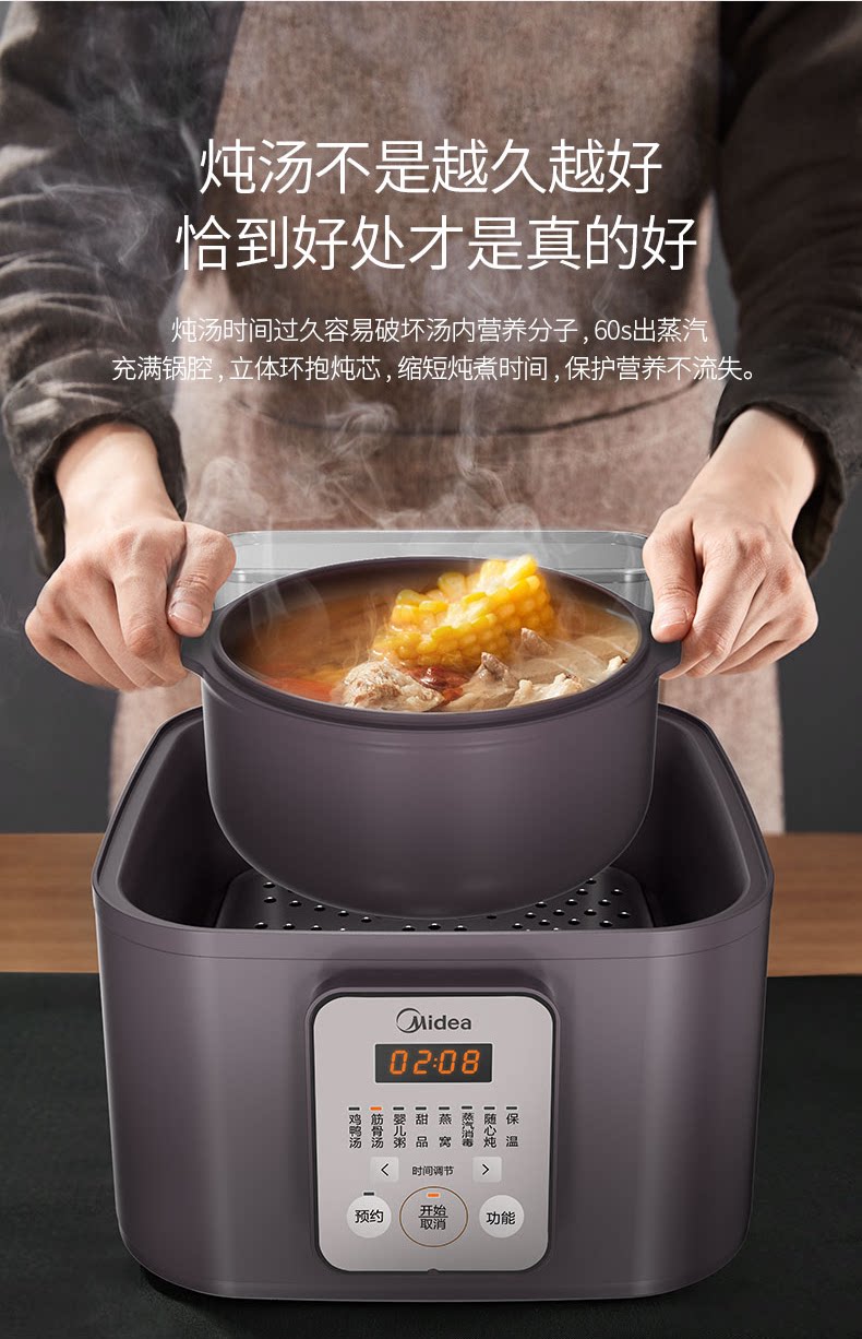 Мидиа -паровочный тушеной горшок с тушеной горшок с электрической плитой Полностью автоматический домашний керамический суп -кара