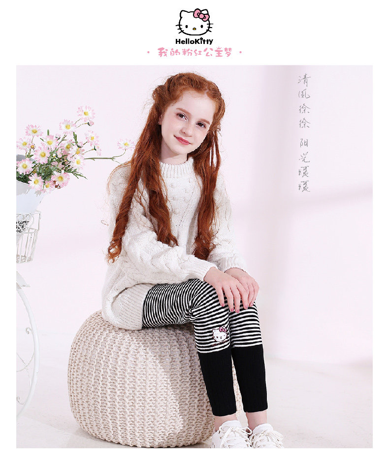 Hello kitty, утепленные хлопковые штаны, детские трикотажные шерстяные леггинсы, в западном стиле, облегающий крой