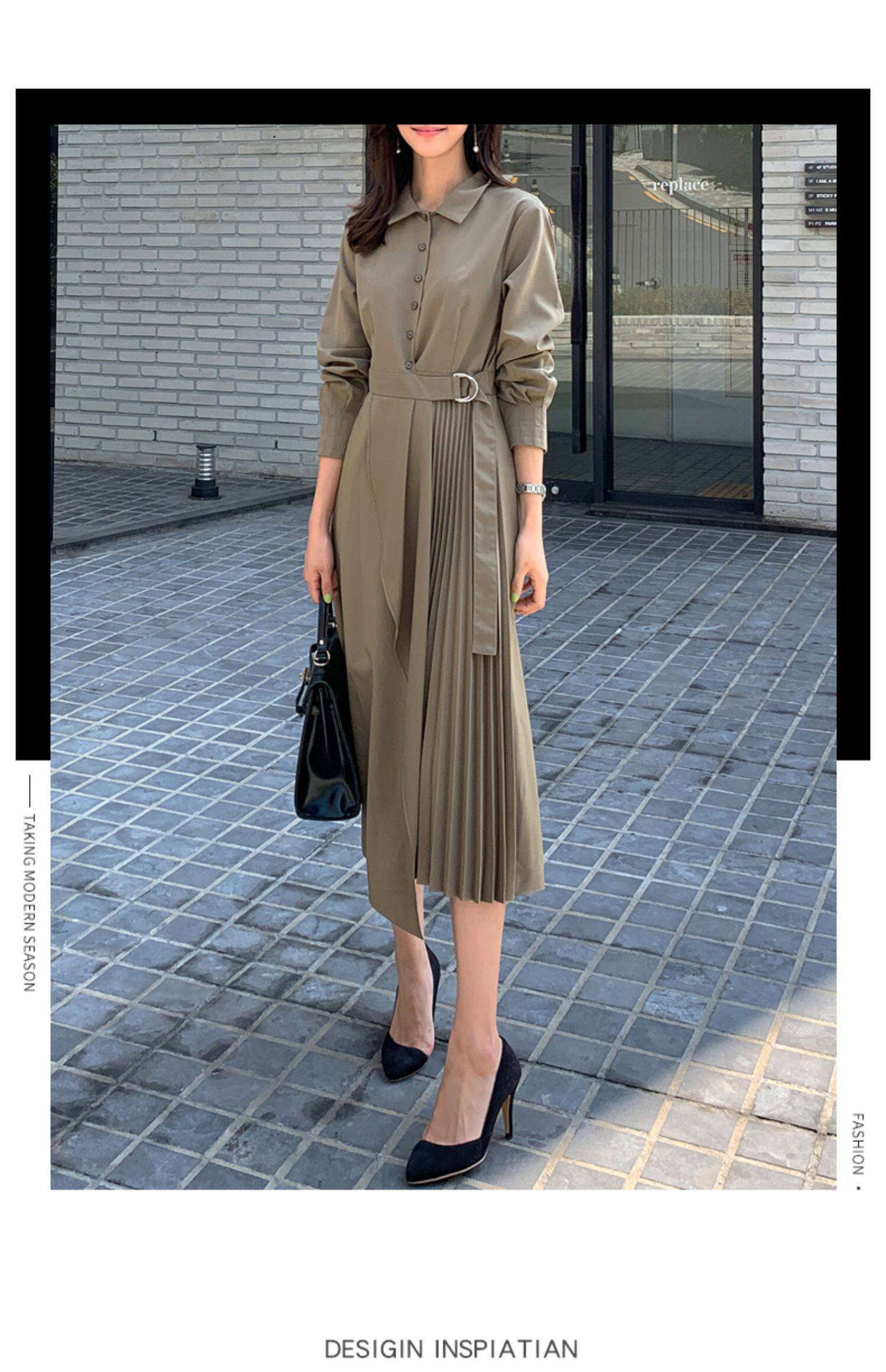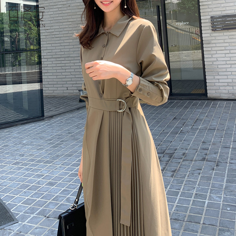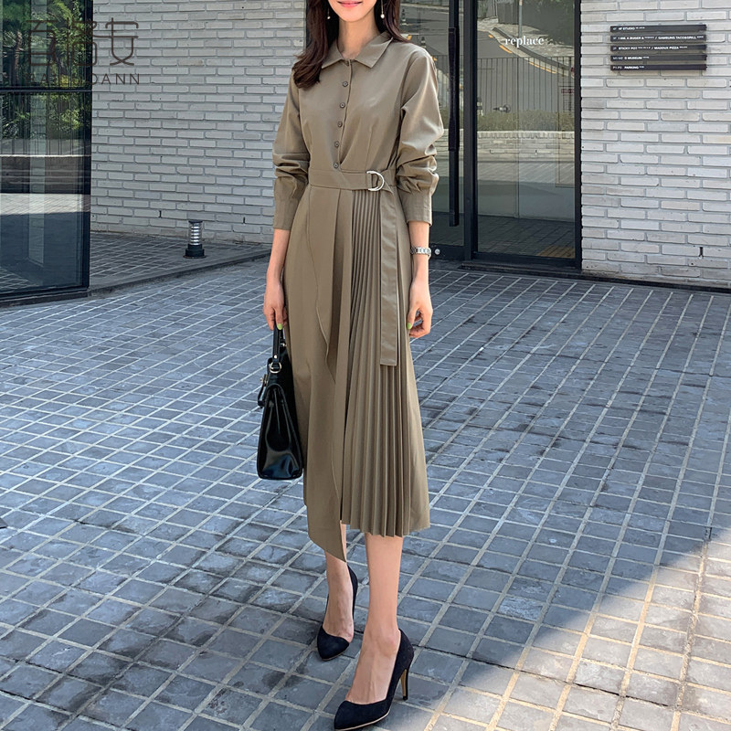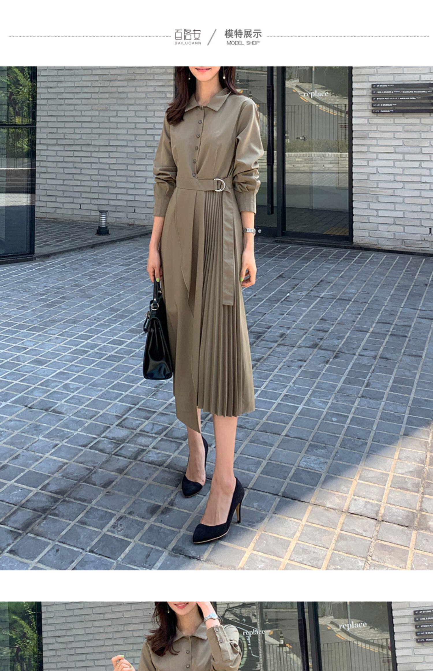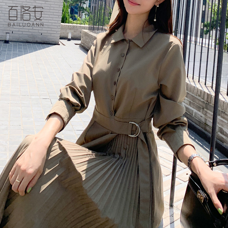 百洛安 Весенняя рубашка, приталенный корсет, платье, длинная юбка в складку, длина миди