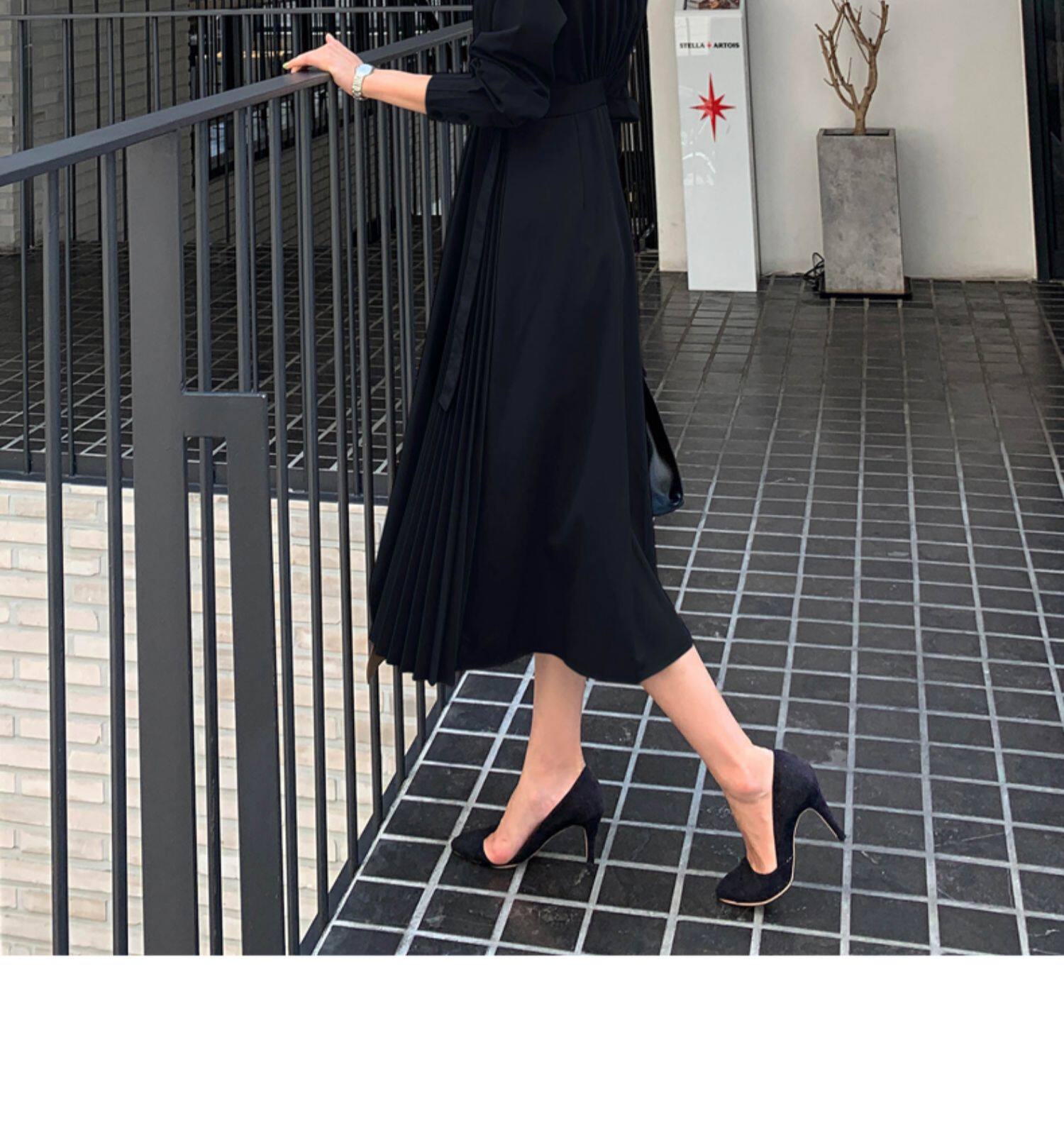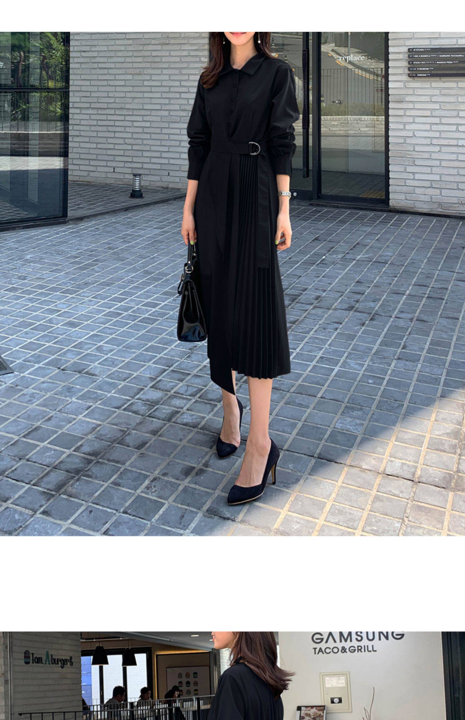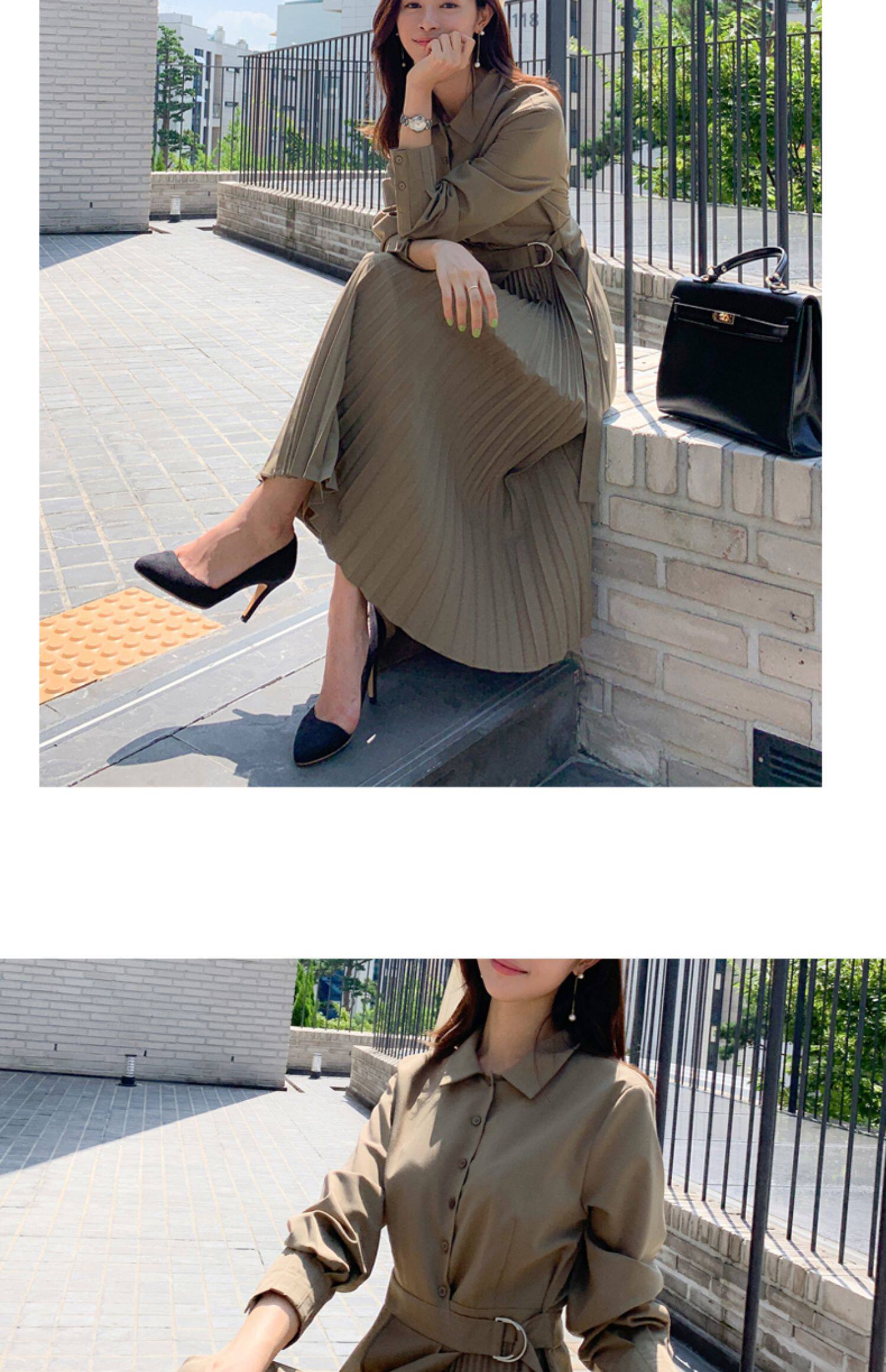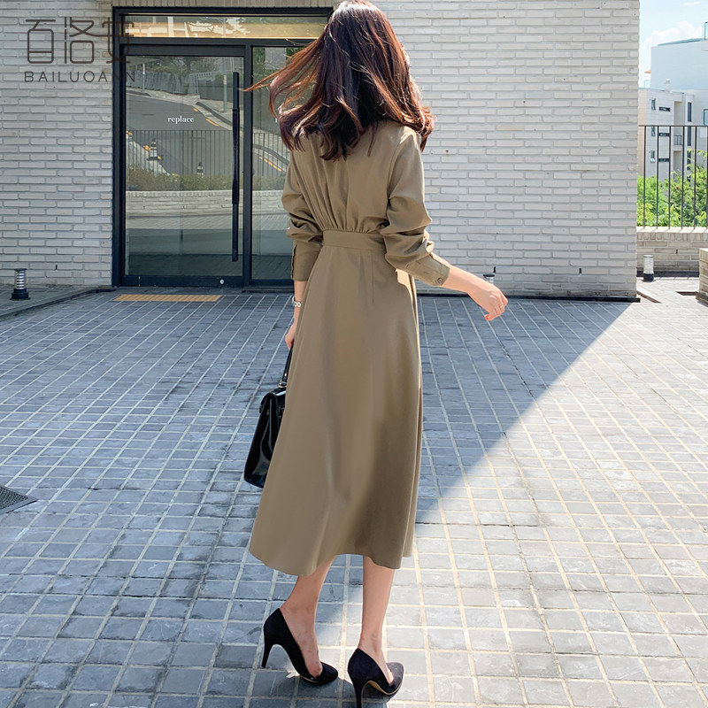 百洛安 Весенняя рубашка, приталенный корсет, платье, длинная юбка в складку, длина миди