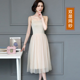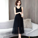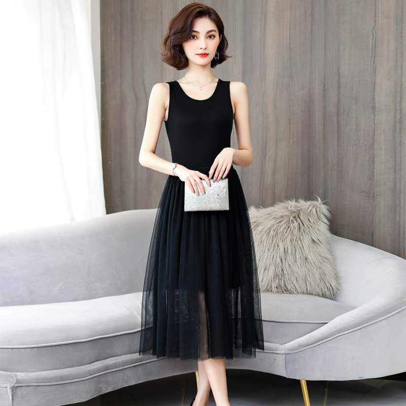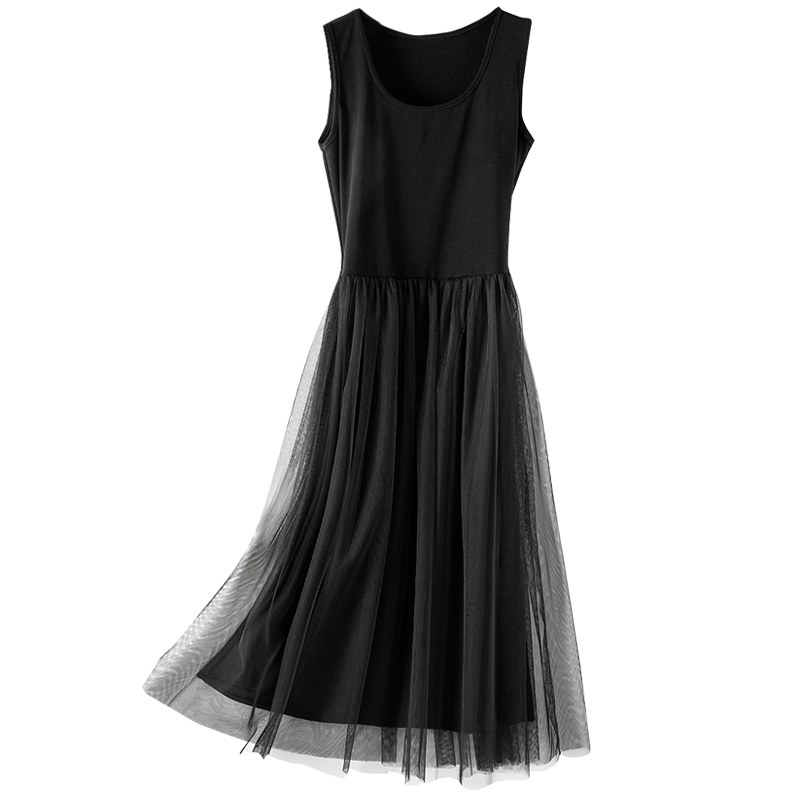 Осеннее базовое платье без рукавов, длинная юбка, из фатина, эффект подтяжки, свободный крой
