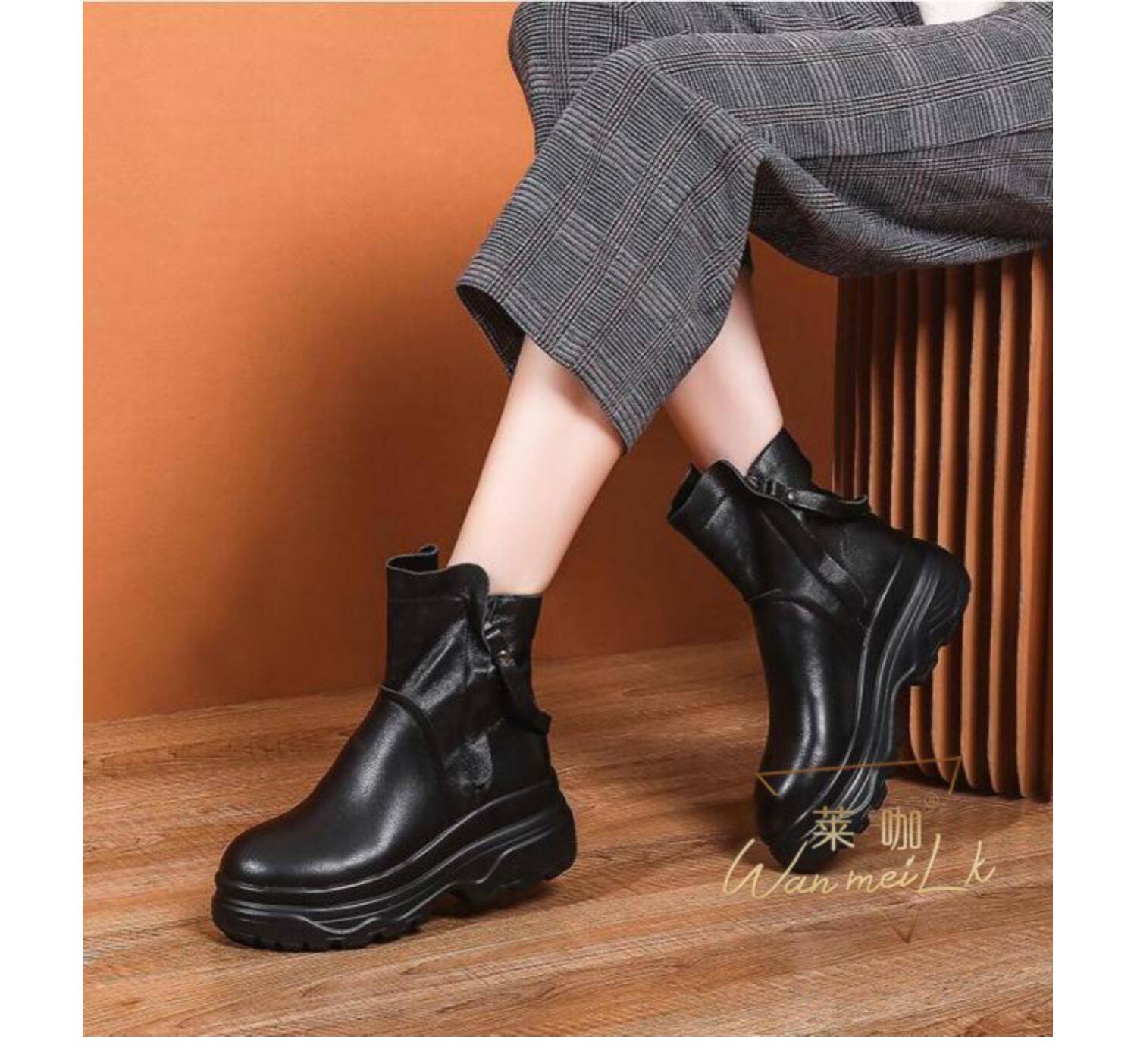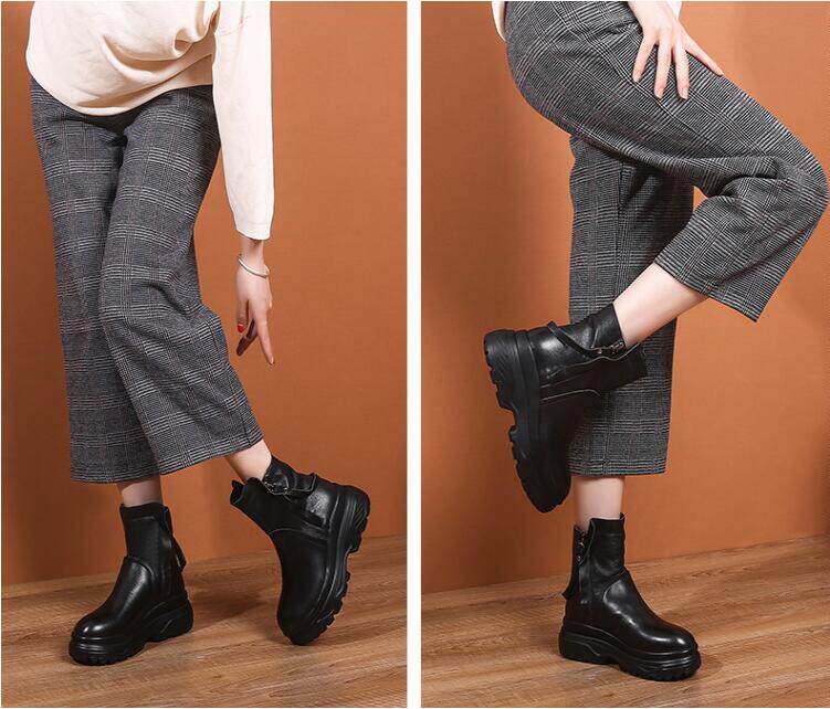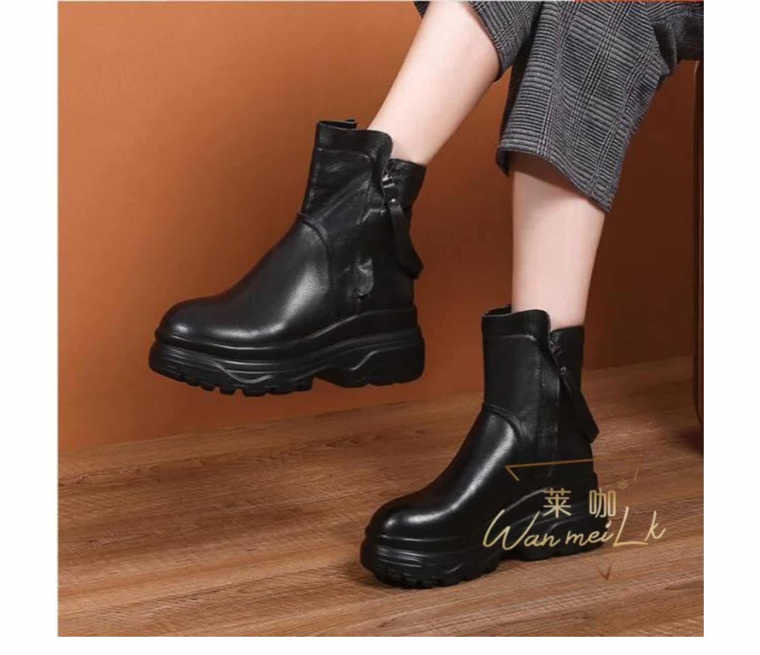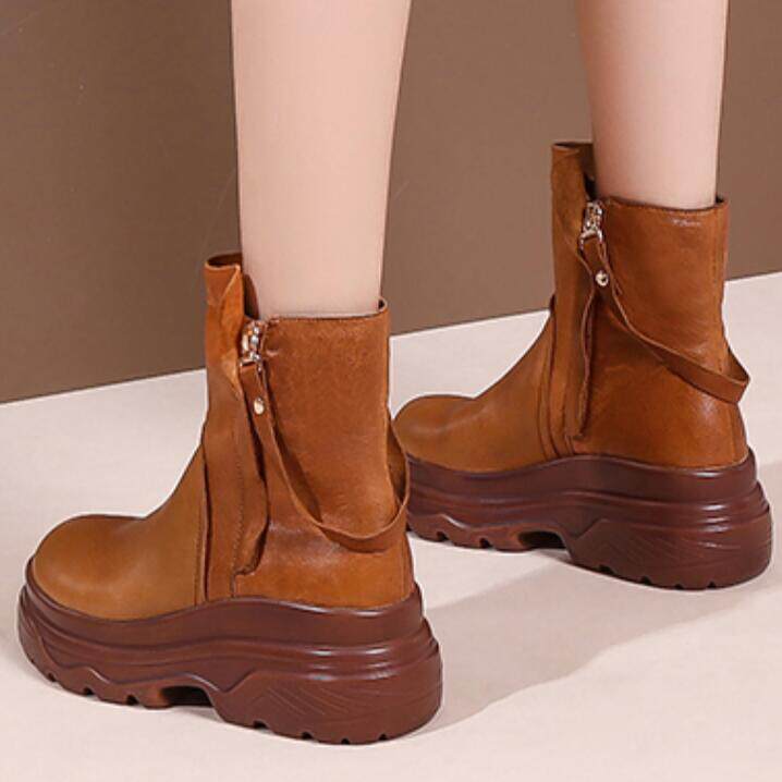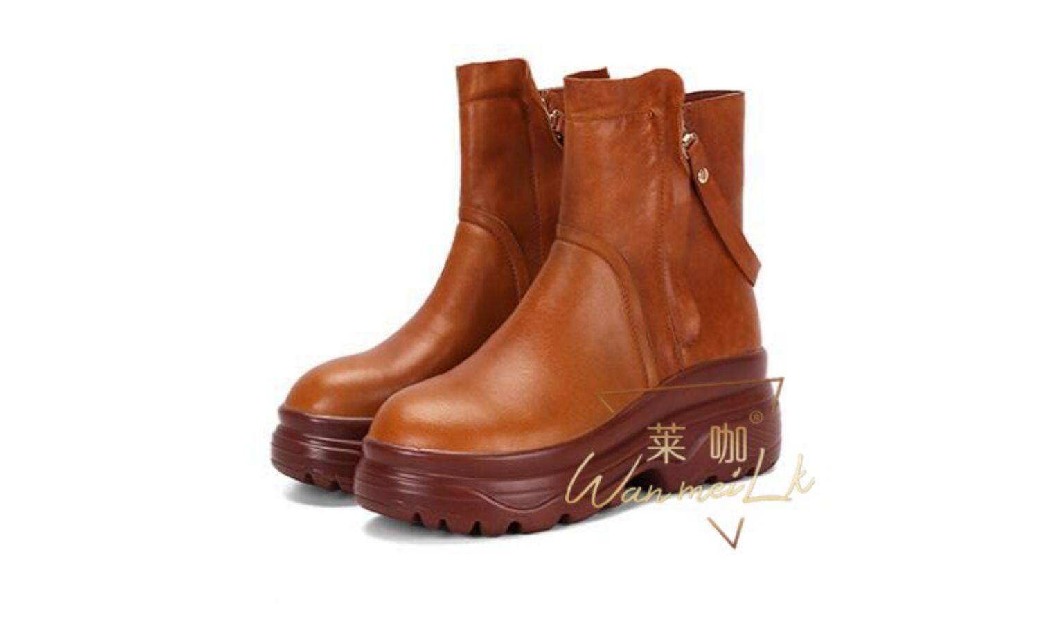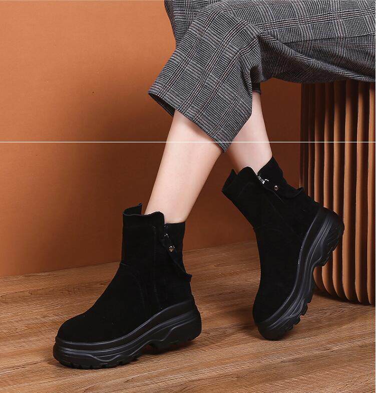 Невидимая внутренняя прибавка к росту 10 см, удобный толстый каблук, молния сбоку, водонепроницаемая платформа, короткие ботинки, женские ботинки Laika 7088k