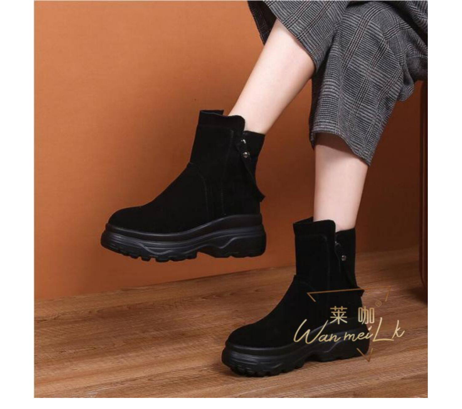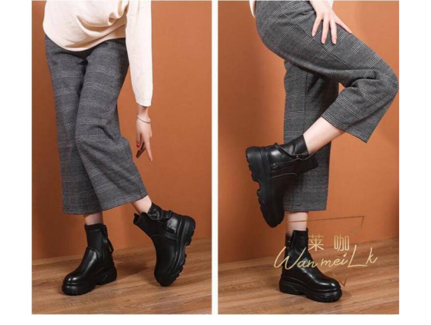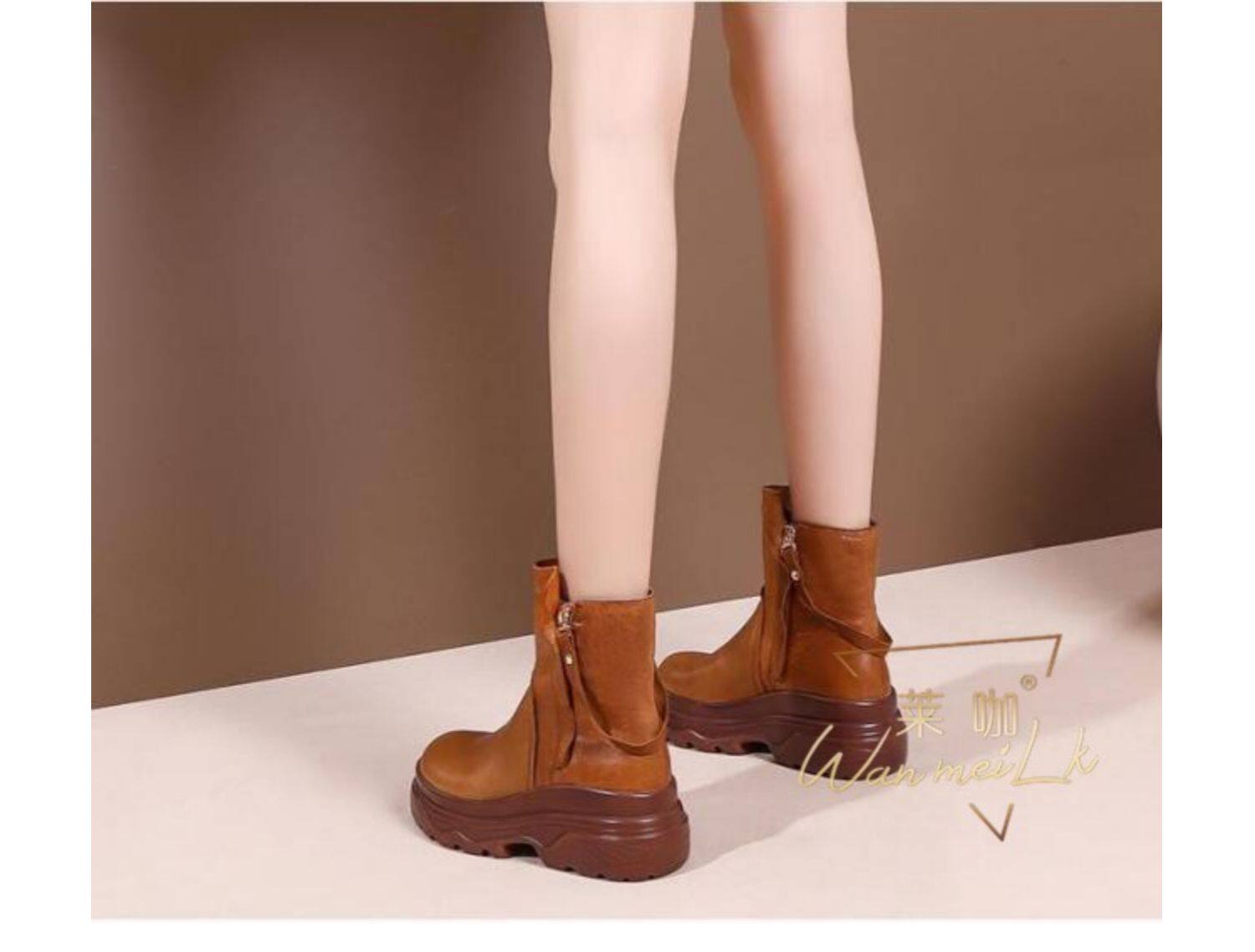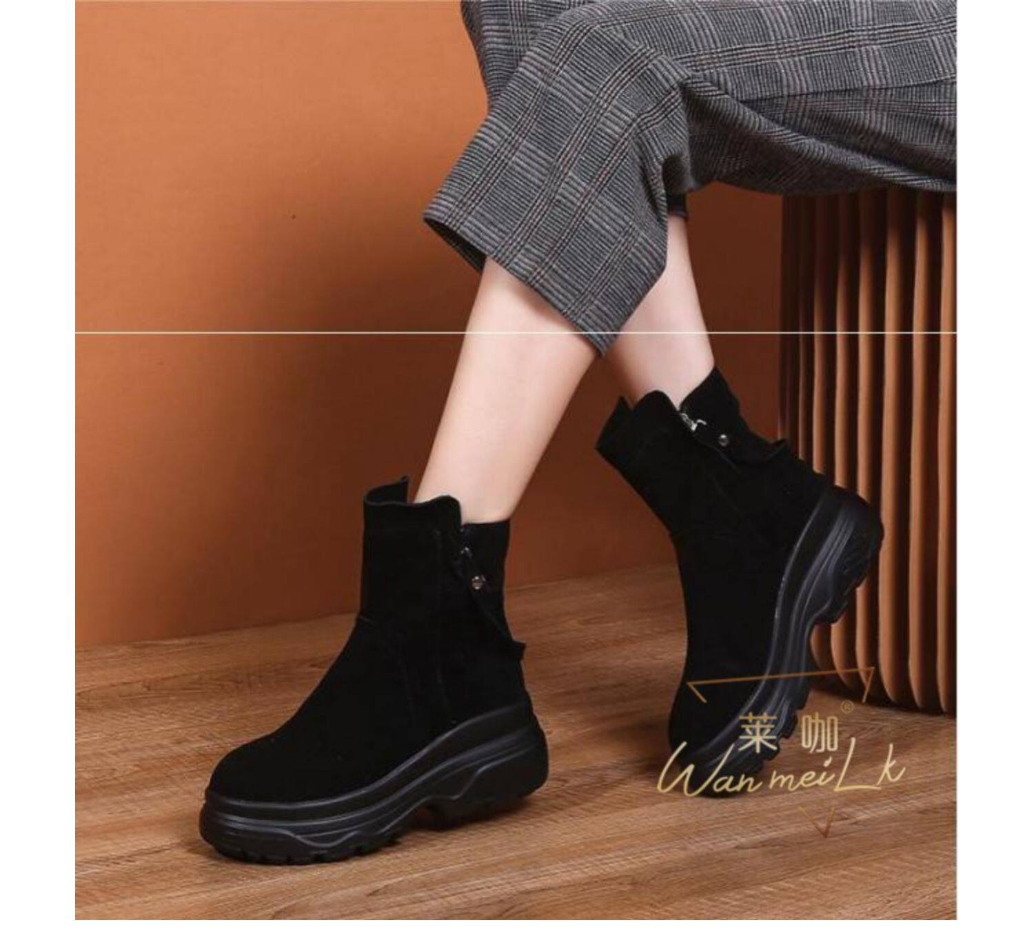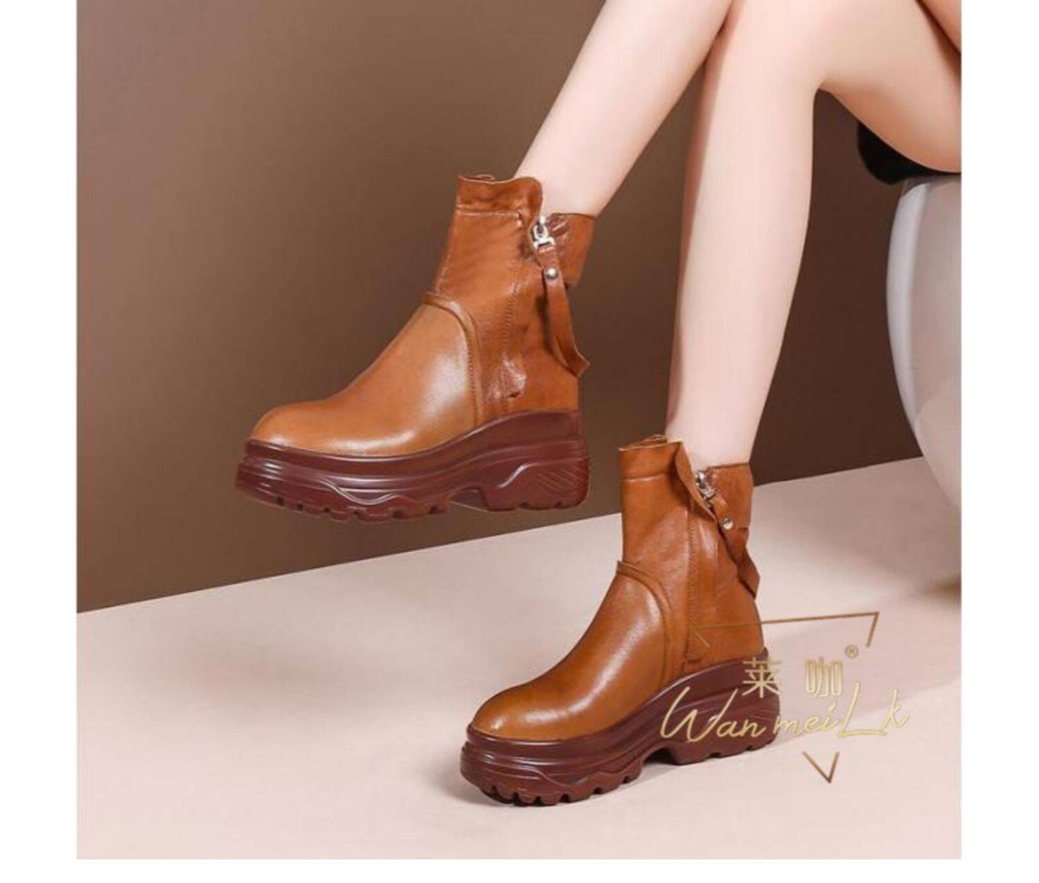 Невидимая внутренняя прибавка к росту 10 см, удобный толстый каблук, молния сбоку, водонепроницаемая платформа, короткие ботинки, женские ботинки Laika 7088k