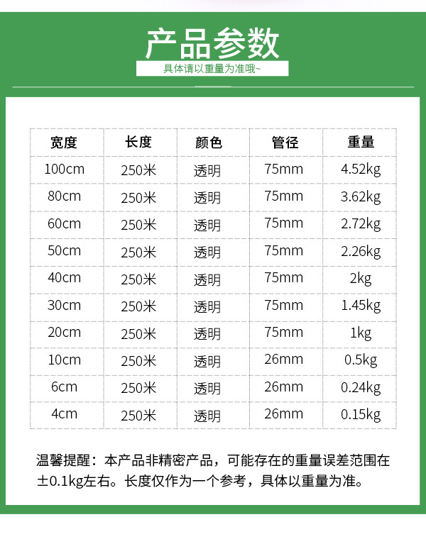| Технические характеристики: | 6 см, 250м, 10 см, 250м, 20 см, 250м, 30 см, 250м, 40 см, 250м, 50 см, 250м, 60 см, 250м, 80 см, 250м, 100 см, 250м, Пара защитных пленок для рук из стретч-пленки. |