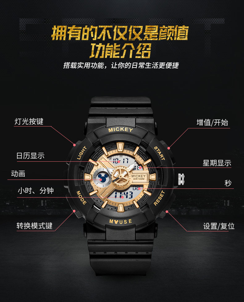 Дисней, мужские часы, водонепроницаемые детские часы для мальчиков, подходит для подростков, 12-15 лет, для средней школы, защита при падении