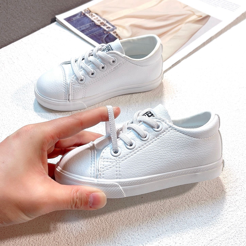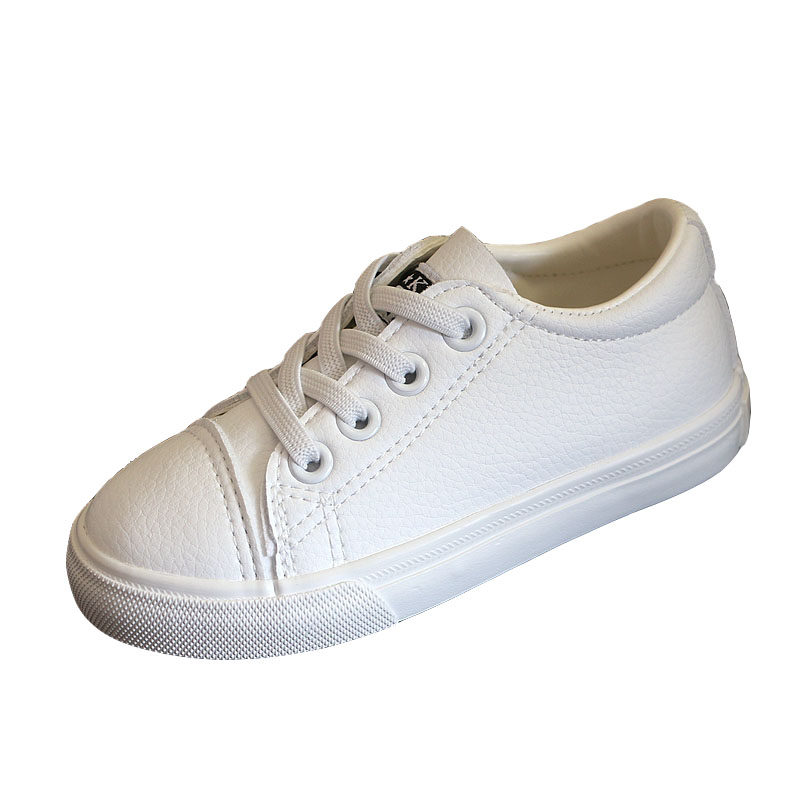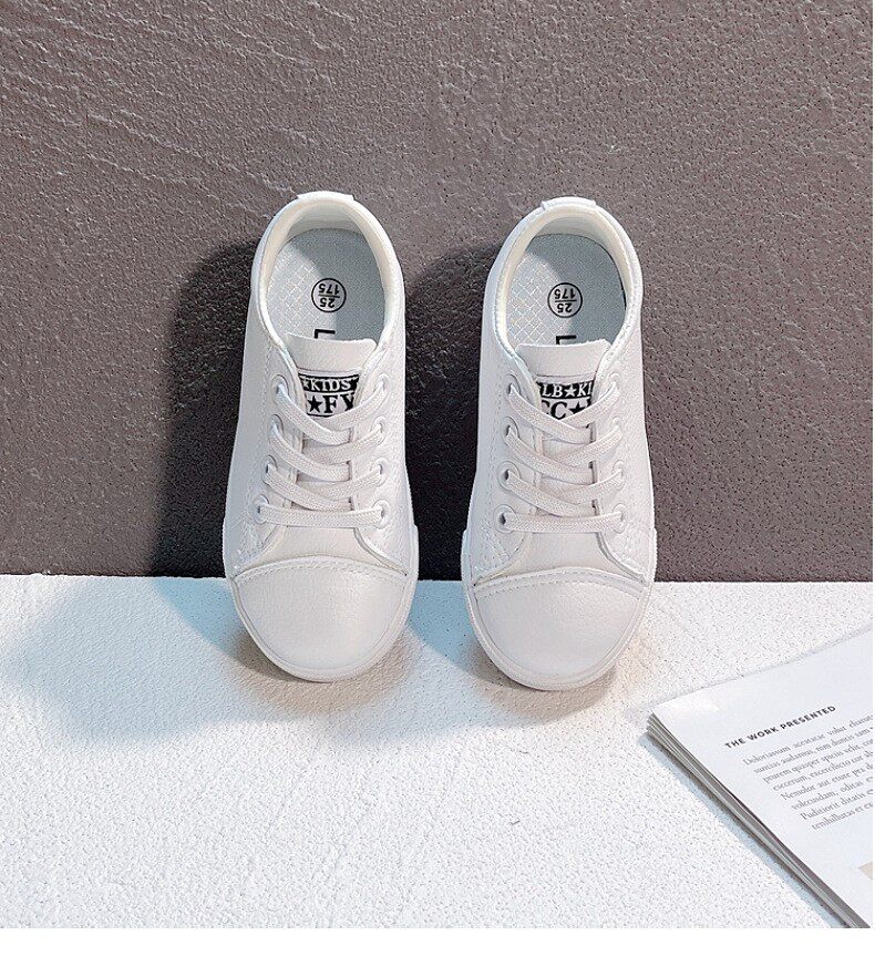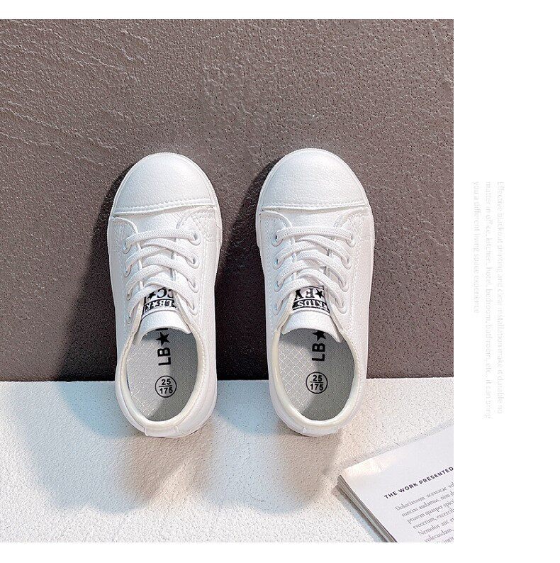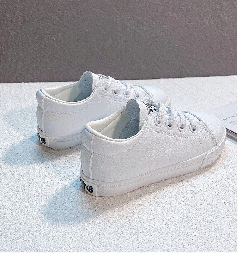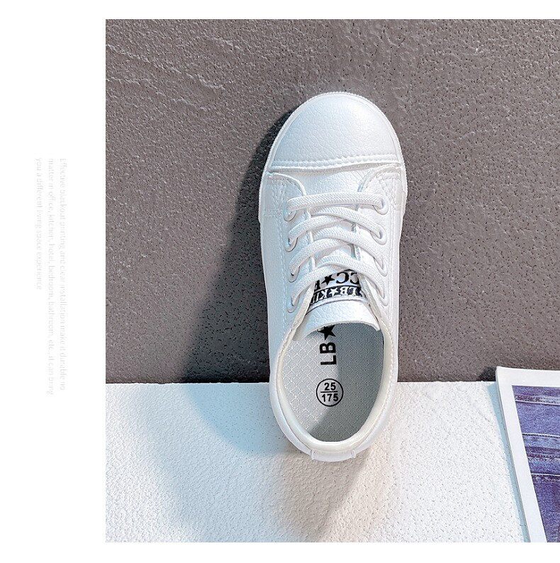 Маленькая белая обувь детского сада в начальной школе, обозначенном белыми туфлями