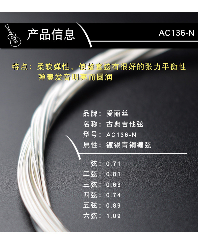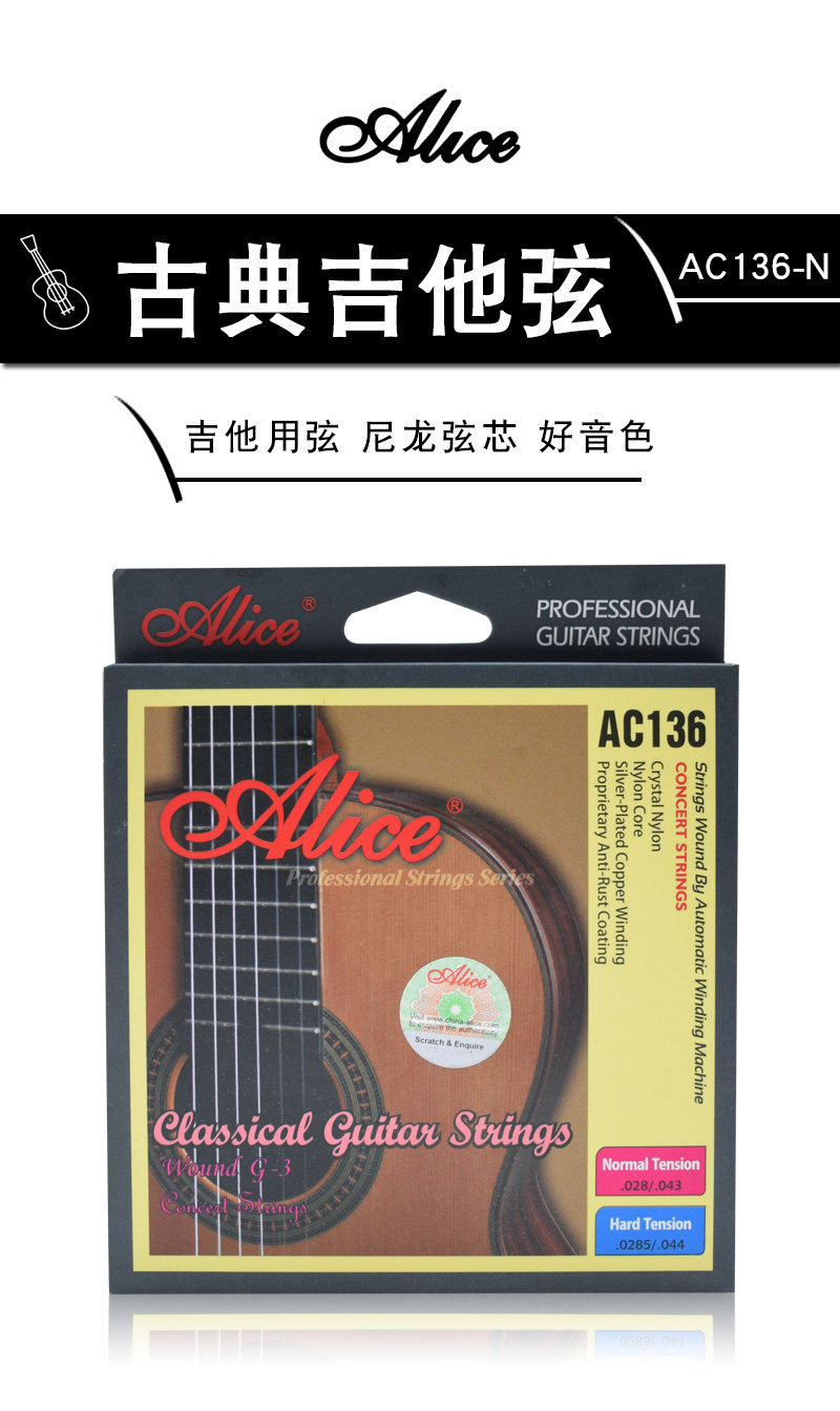 Подлинная Alice AC136 Классическая гитарная струна нейлоновая струна 6 серебряного покрытия против крышков против