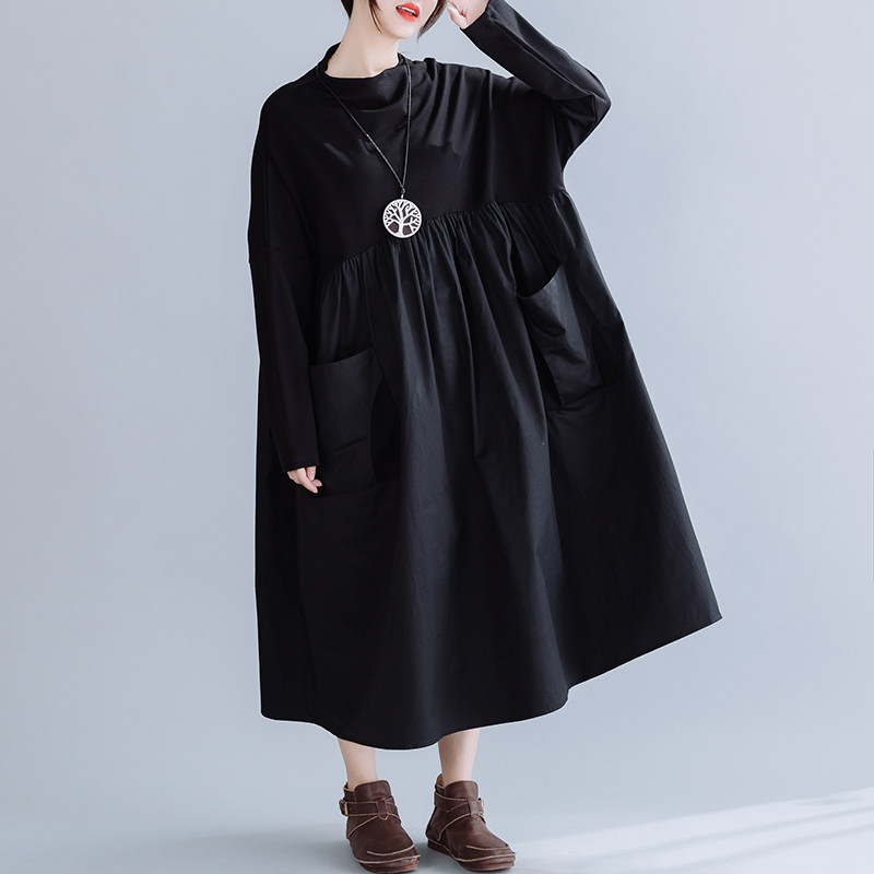 Осенний модный универсальный пластырь, платье, свободный крой, большой размер, по фигуре, высокая талия