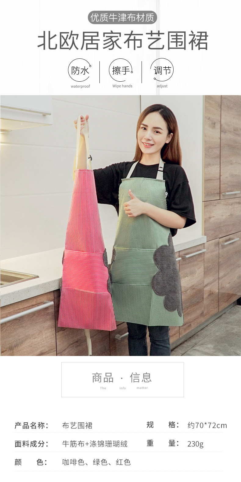 晶意 Домашний стираемый водонепроницаемый фартук, модная милая юбка, нагрудник