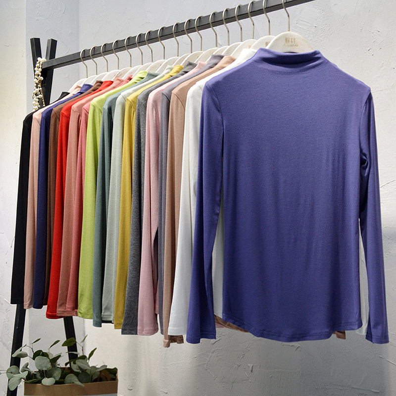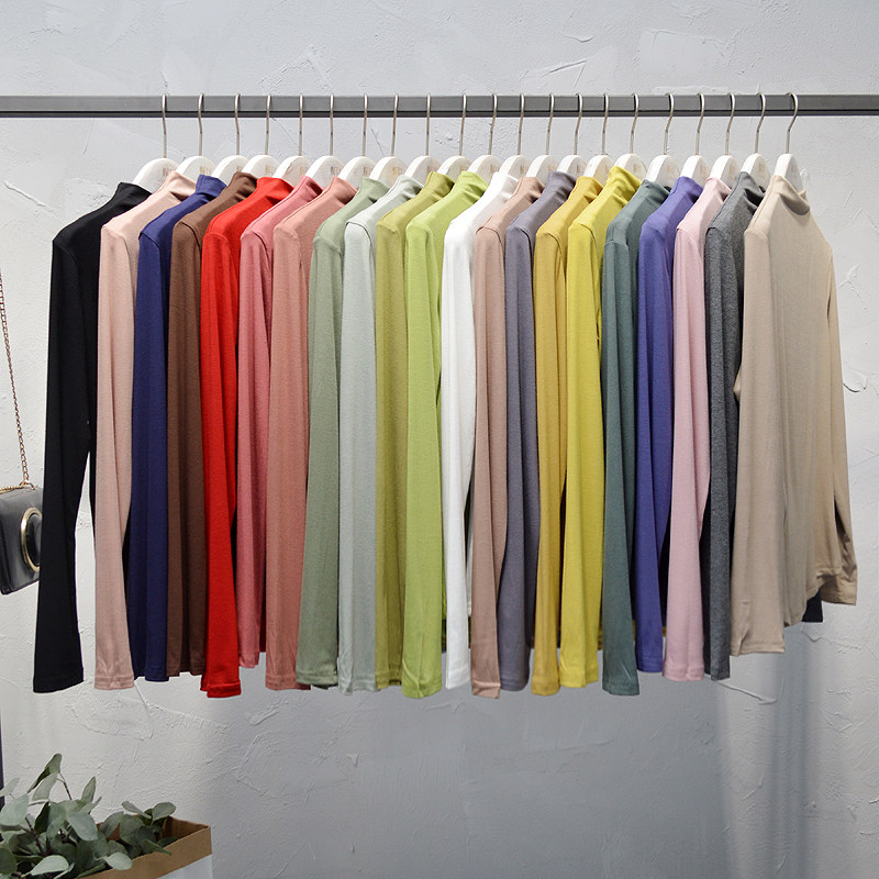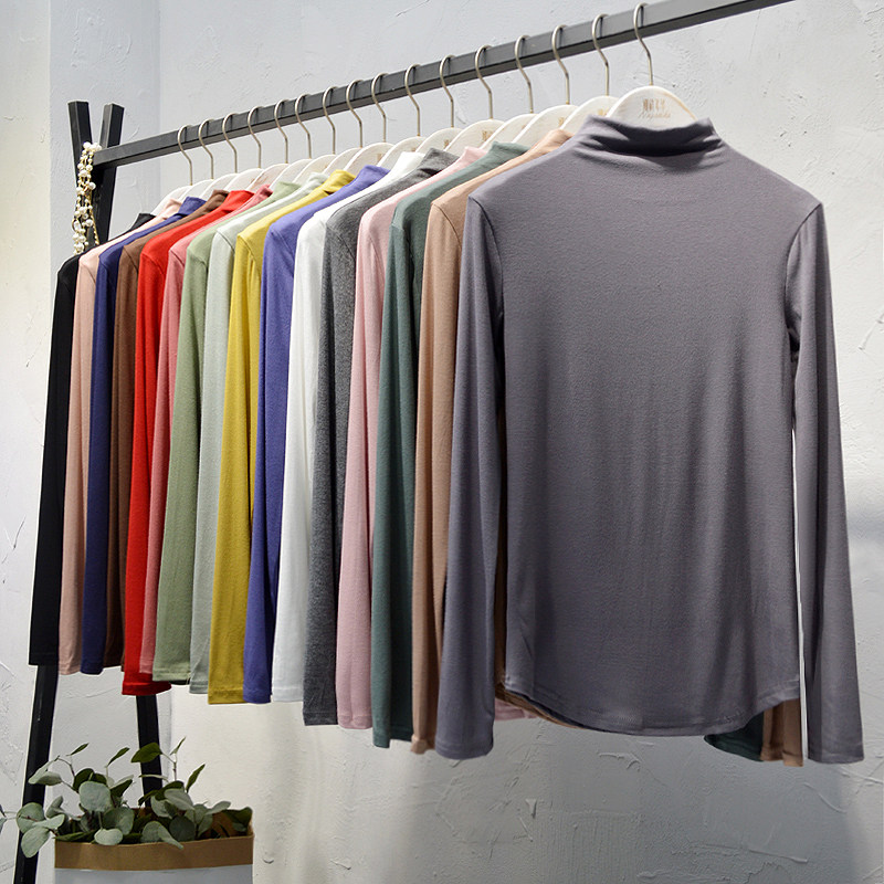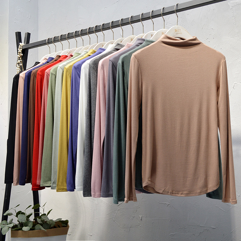 Демисезонный базовый приятный телу брендовый лонгслив для школьников и студентов, в корейском стиле, высокий воротник, облегающий крой