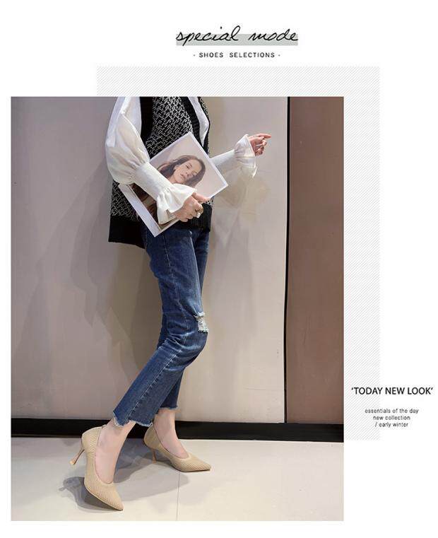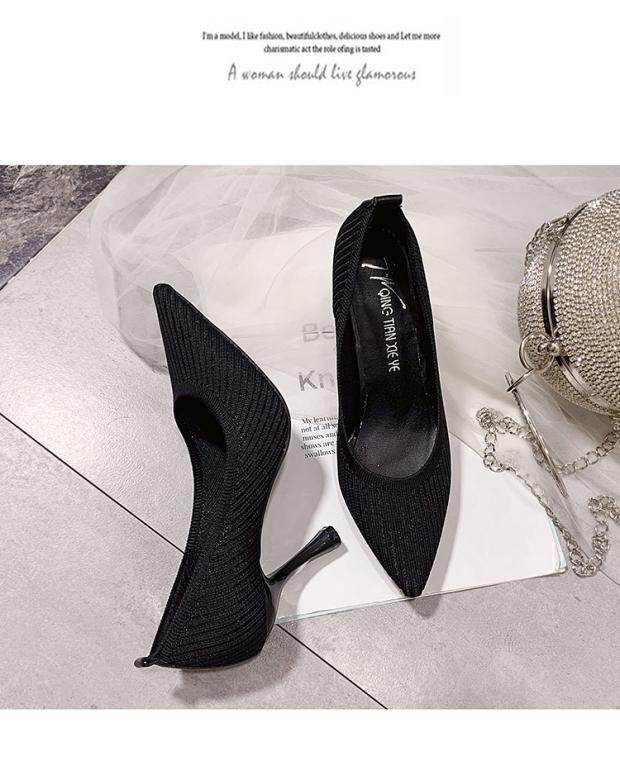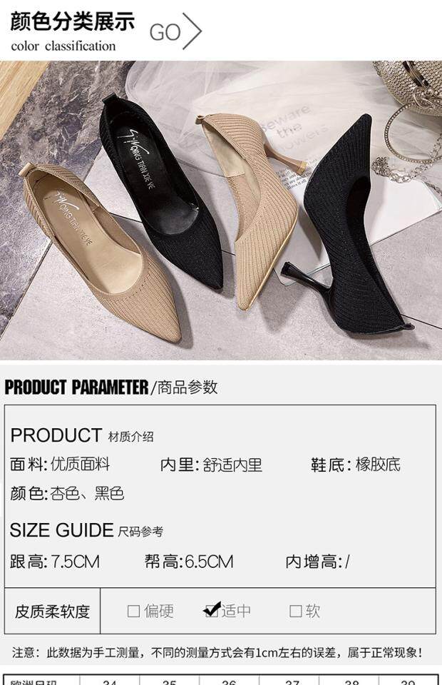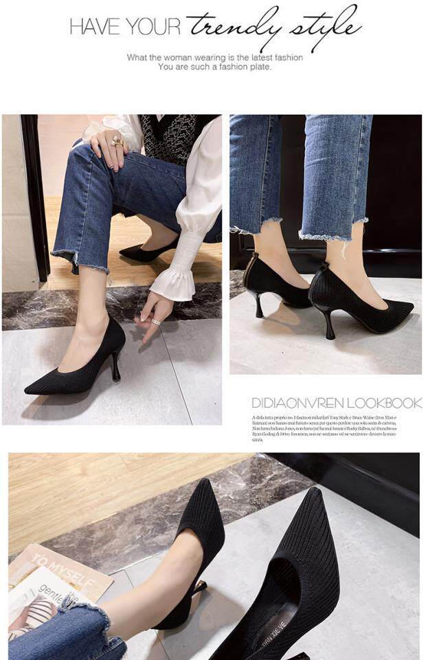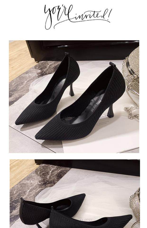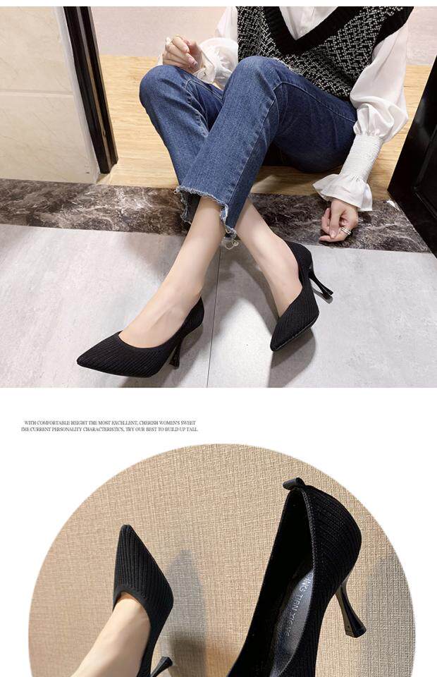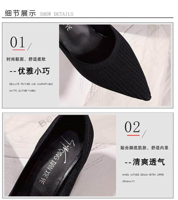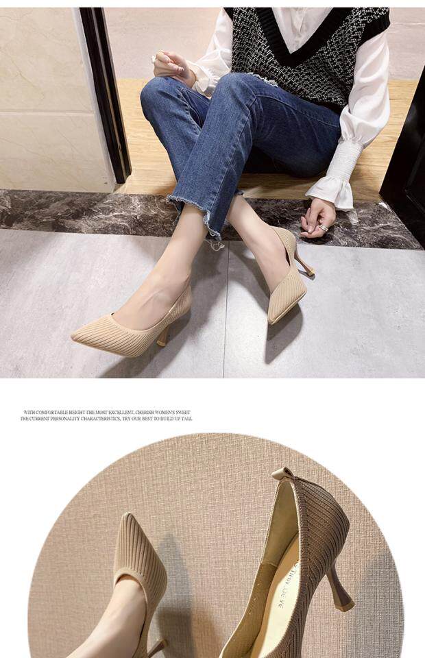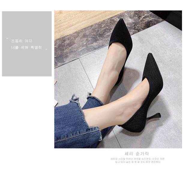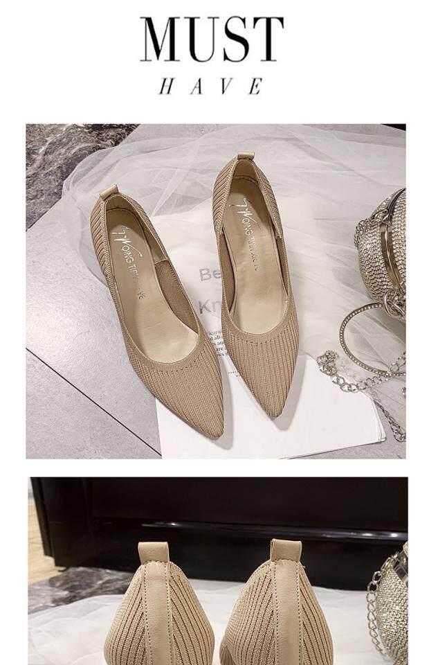 Летние универсальные трикотажные туфли на высоком каблуке с низким вырезом, в корейском стиле
