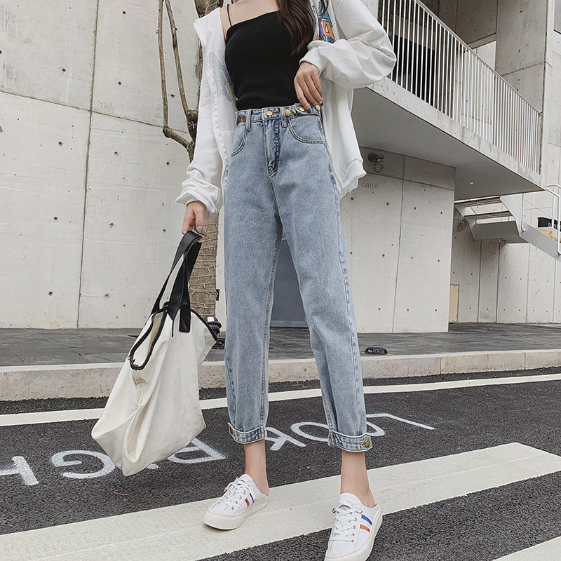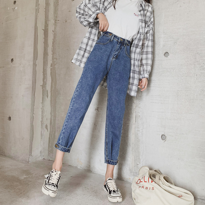 Прямые свободные джинсы, приталенные штаны для школьников и студентов, большой размер, свободный крой, высокая талия