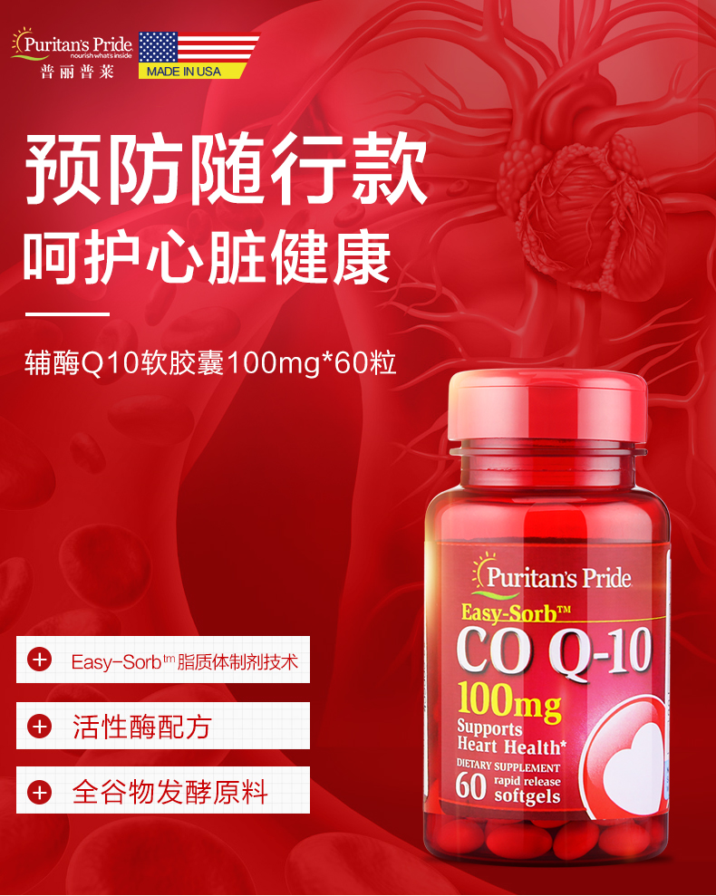 Priepla acrallane Q10 мягкая капсула Q10 защищает сердечно -сосудистые и цереброваскулярные антиоксидантные 100 мг 60 зерен/бутылка