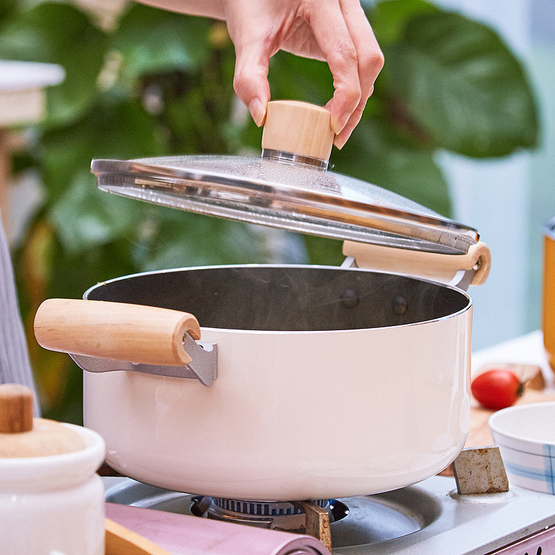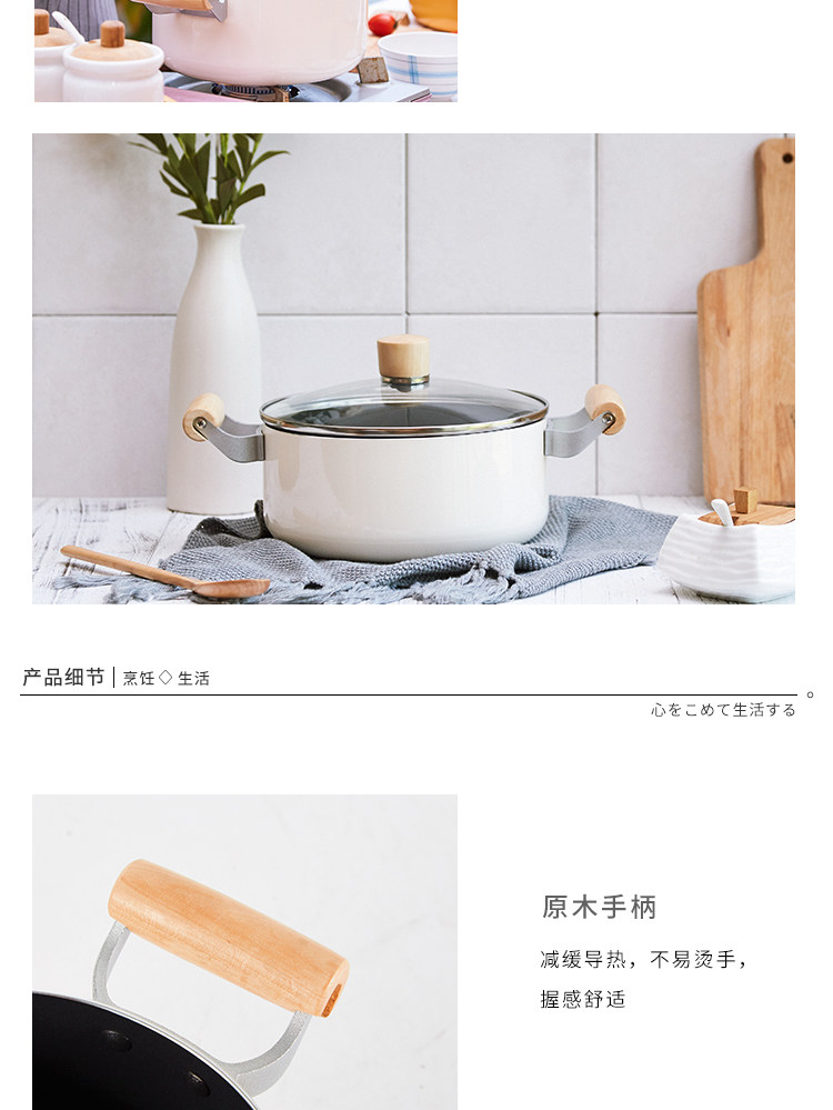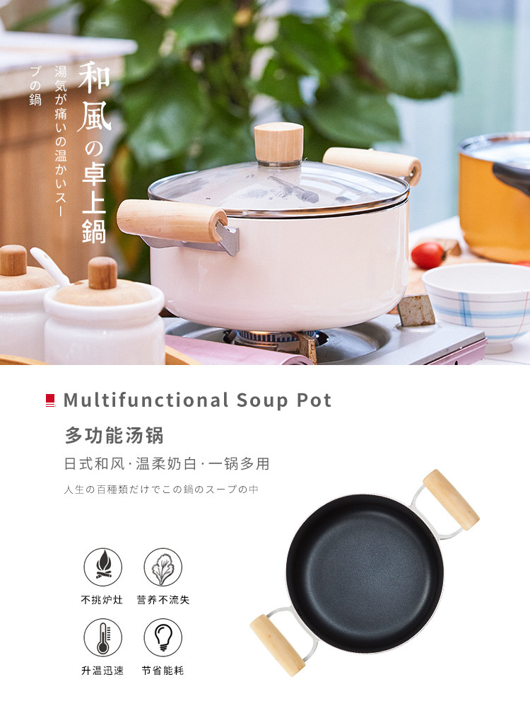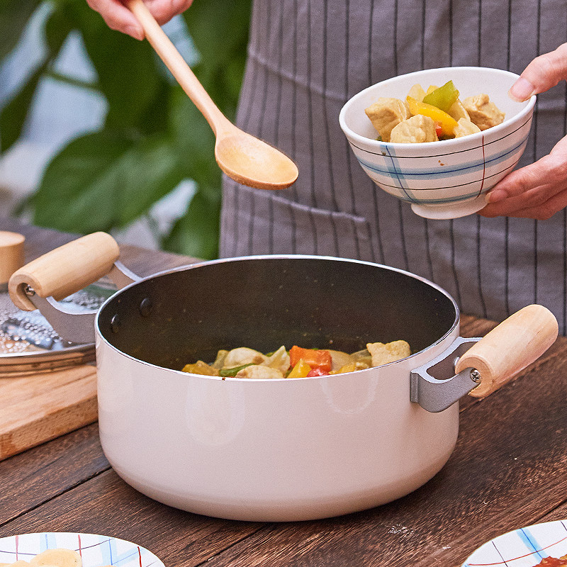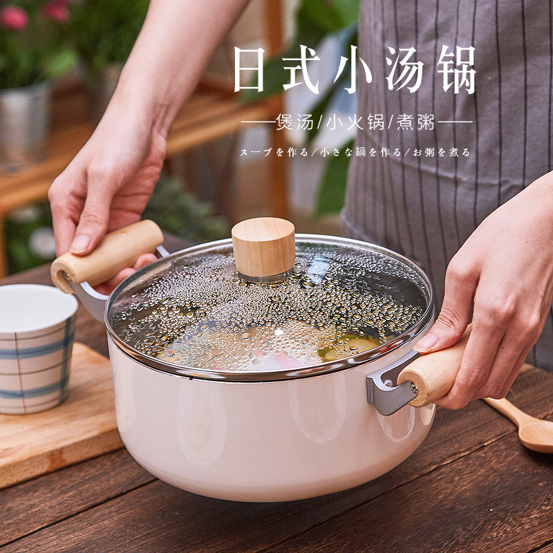 Экспортируемая японская кастрюля для супа с антипригарным покрытием, кастрюля для рамэна, суп для приготовления каши, бинауральная тушеная кастрюля, индукционная плита, газовая плита, универсальная 20 см