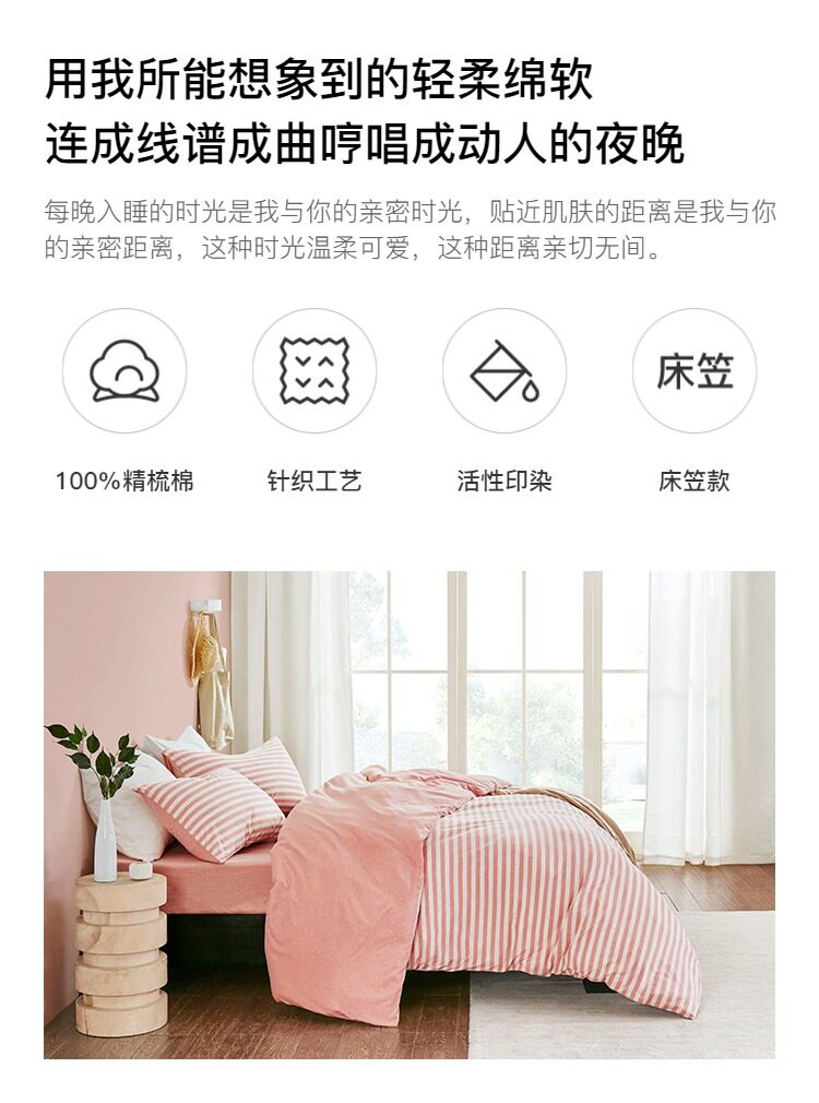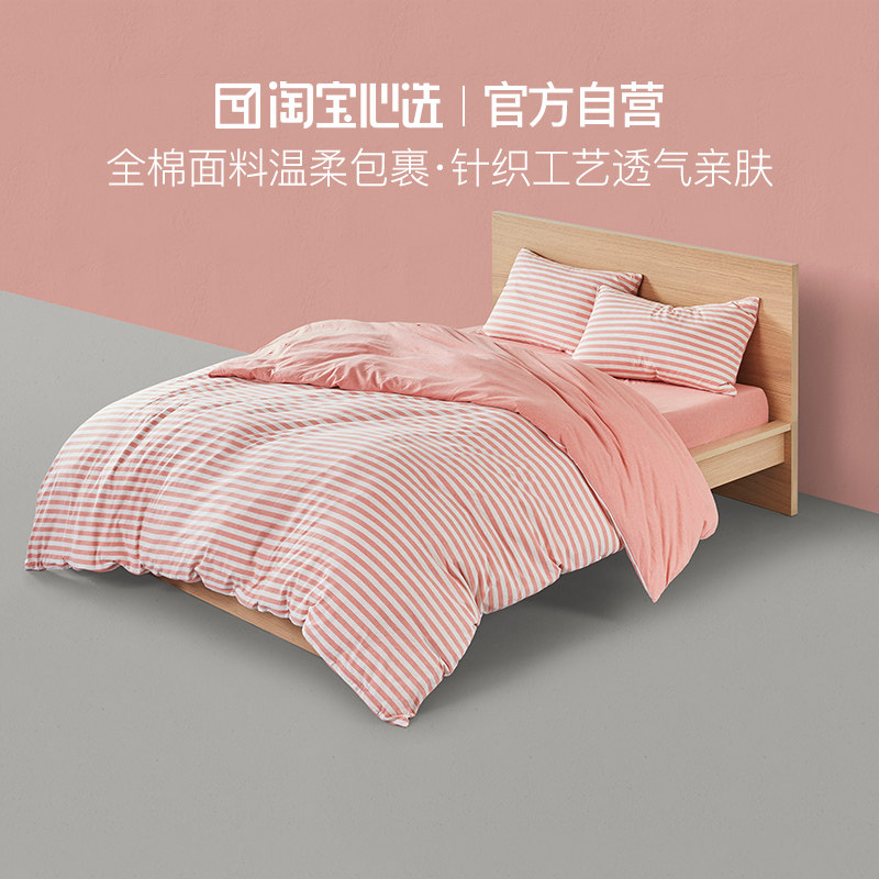 淘宝心选 Импортный хлопковый трикотажный комплект, простыня, 4 предмета, постельные принадлежности