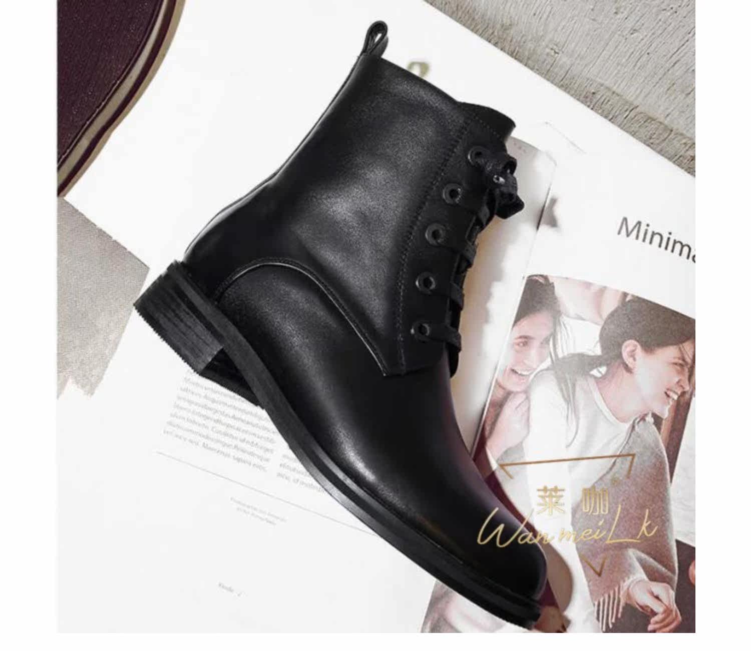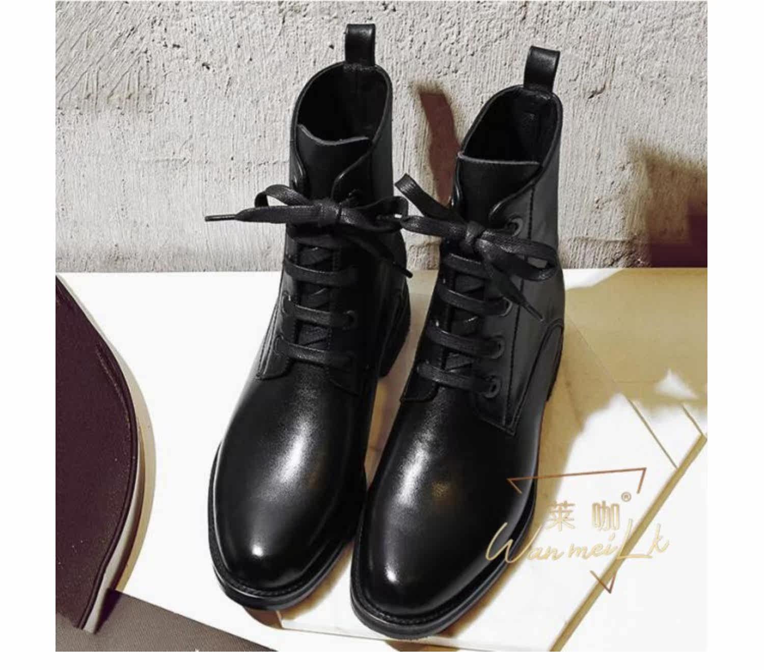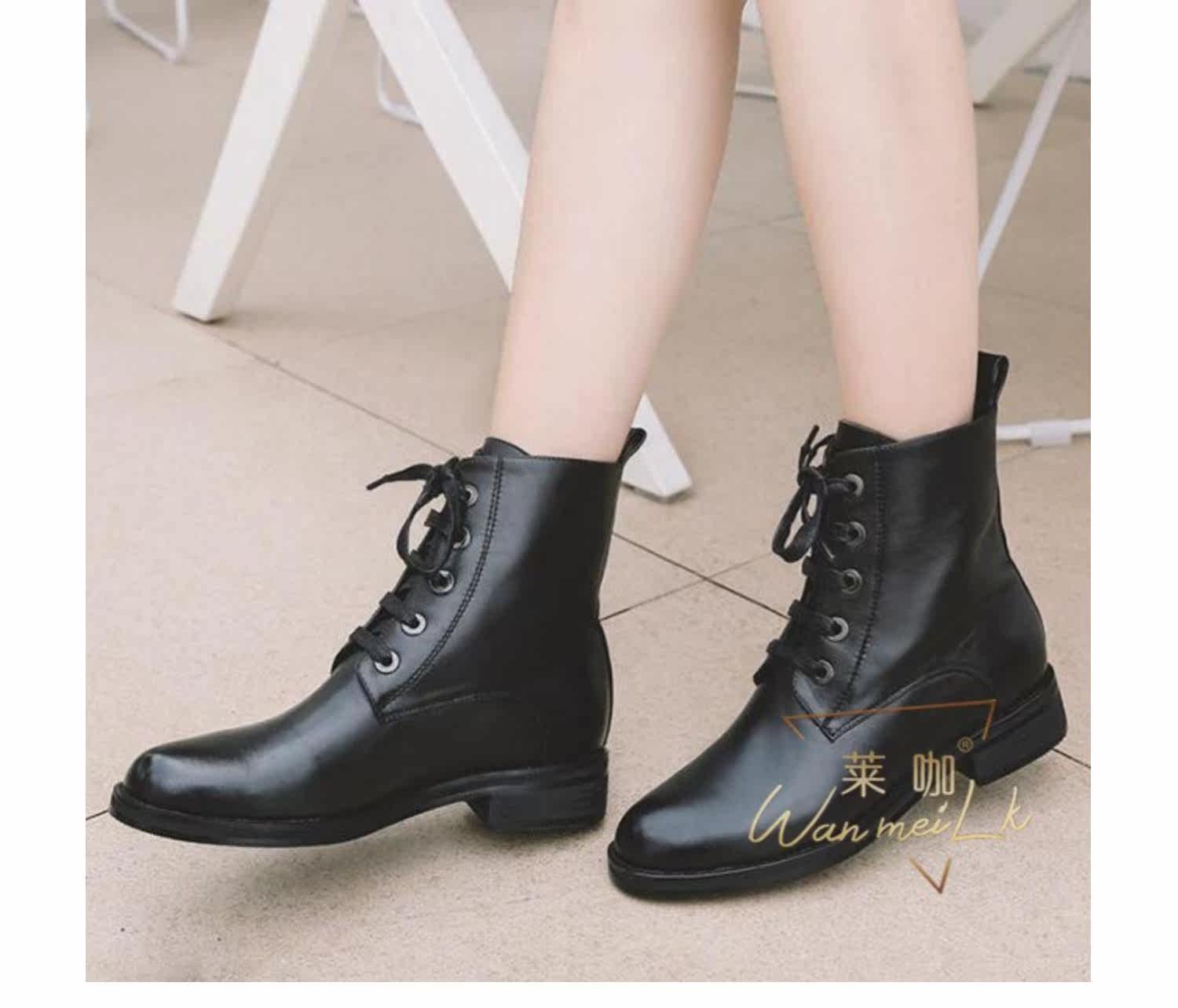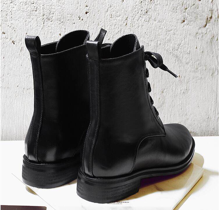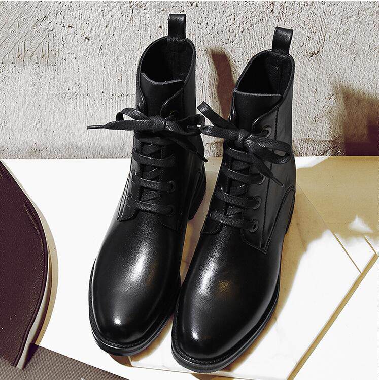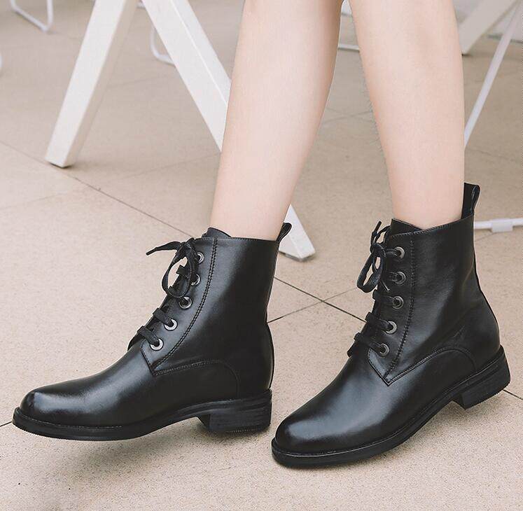 Осенняя незаметная внутренняя прибавка в росте 7 см, классический модный фасон, удобный толстый каблук, короткие ботинки на шнуровке, женские ботинки Laika 7079k