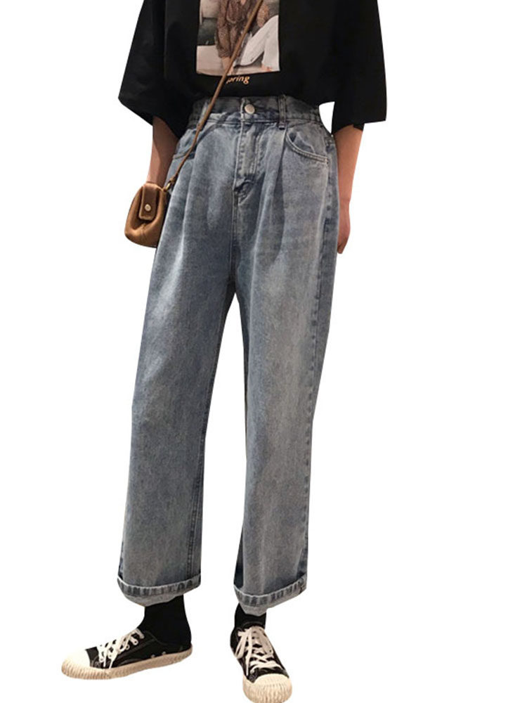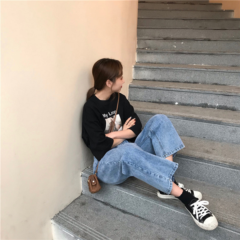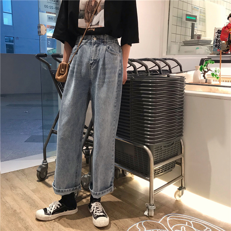Осенние джинсы, штаны для школьников и студентов, в корейском стиле, большой размер, свободный прямой крой