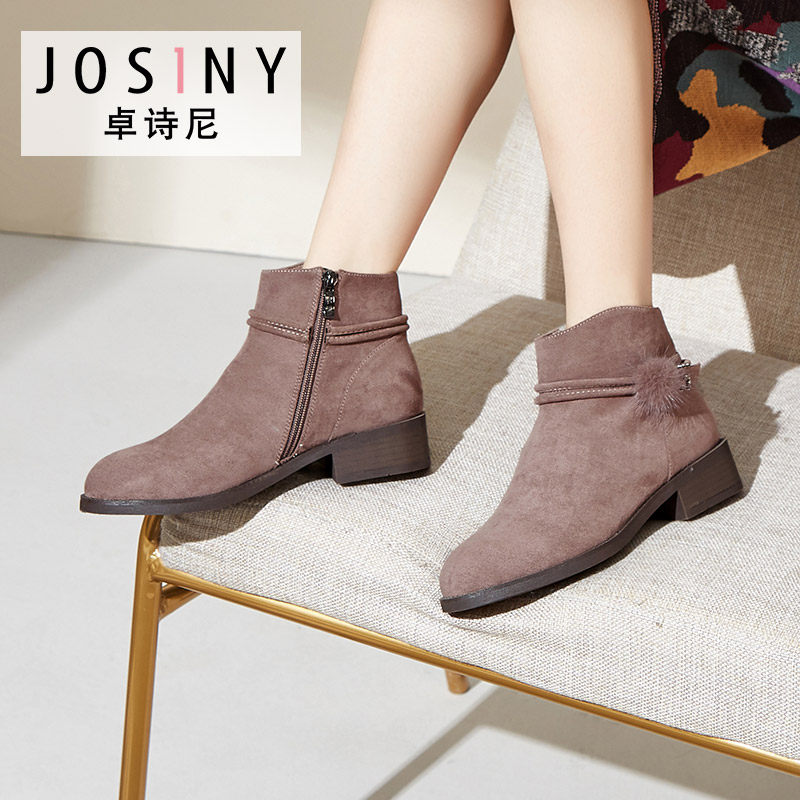 Зимние замшевые короткие сапоги с молнией, флисовые ботильоны, ботинки, 2019