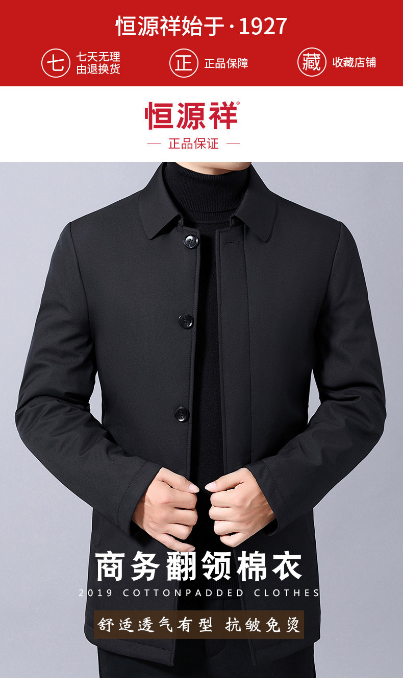 恒源祥 Пуховик, удерживающая тепло куртка, для мужчины среднего возраста, увеличенная толщина