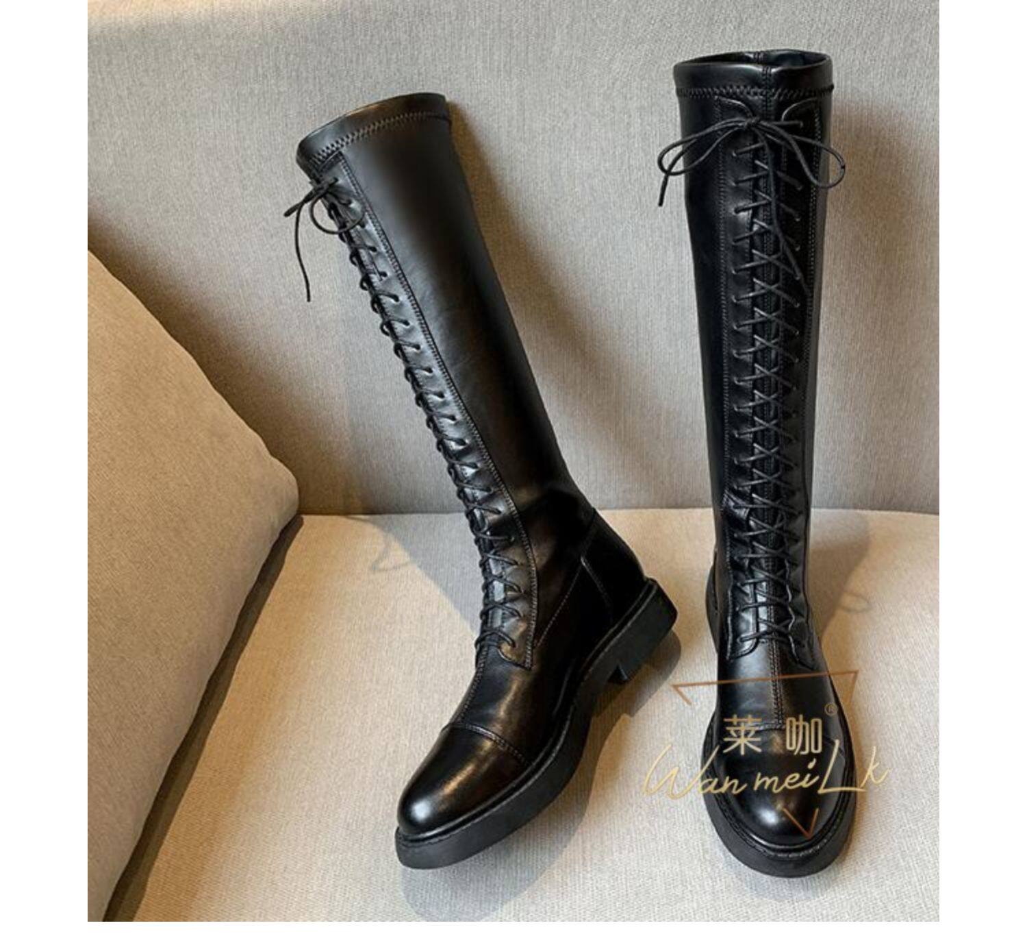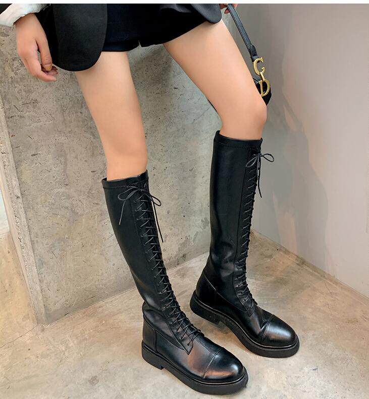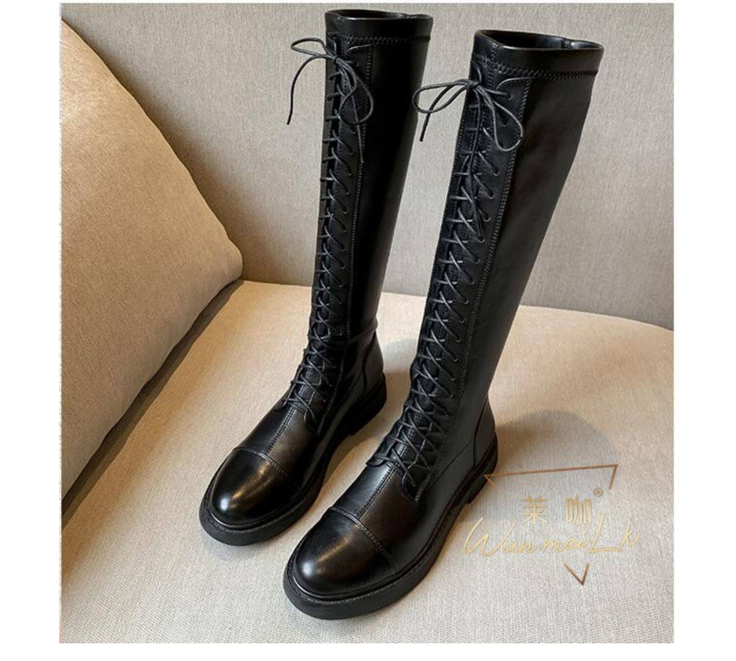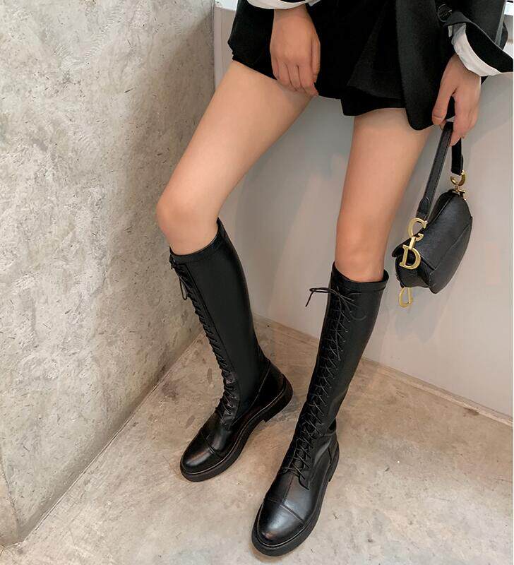 Новая невидимая внутренняя прибавка к росту на 7 см, удобный рукав на толстом каблуке, высокие сапоги с круглым носком, женские ботинки Laika 7091.