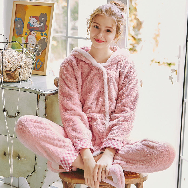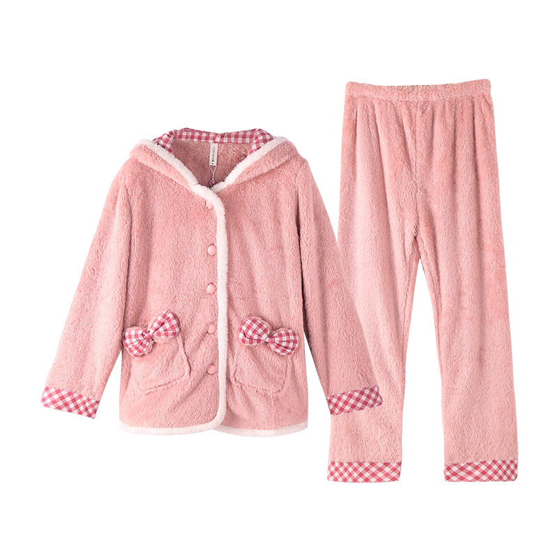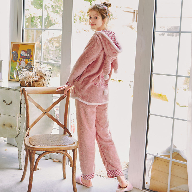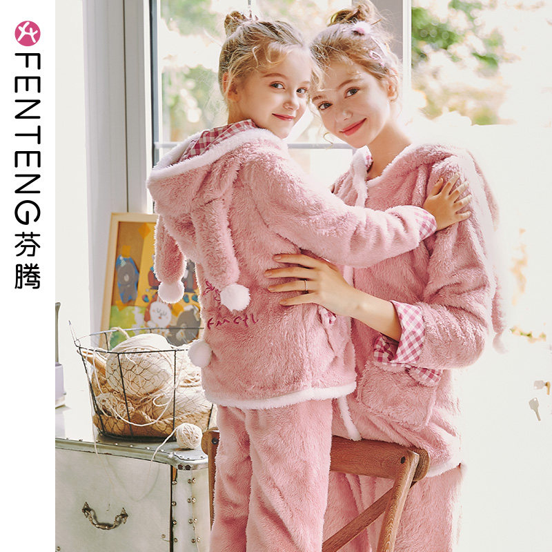 芬腾 Демисезонная коралловая бархатная пижама, флисовая толстовка с капюшоном, комплект, семейный стиль, увеличенная толщина