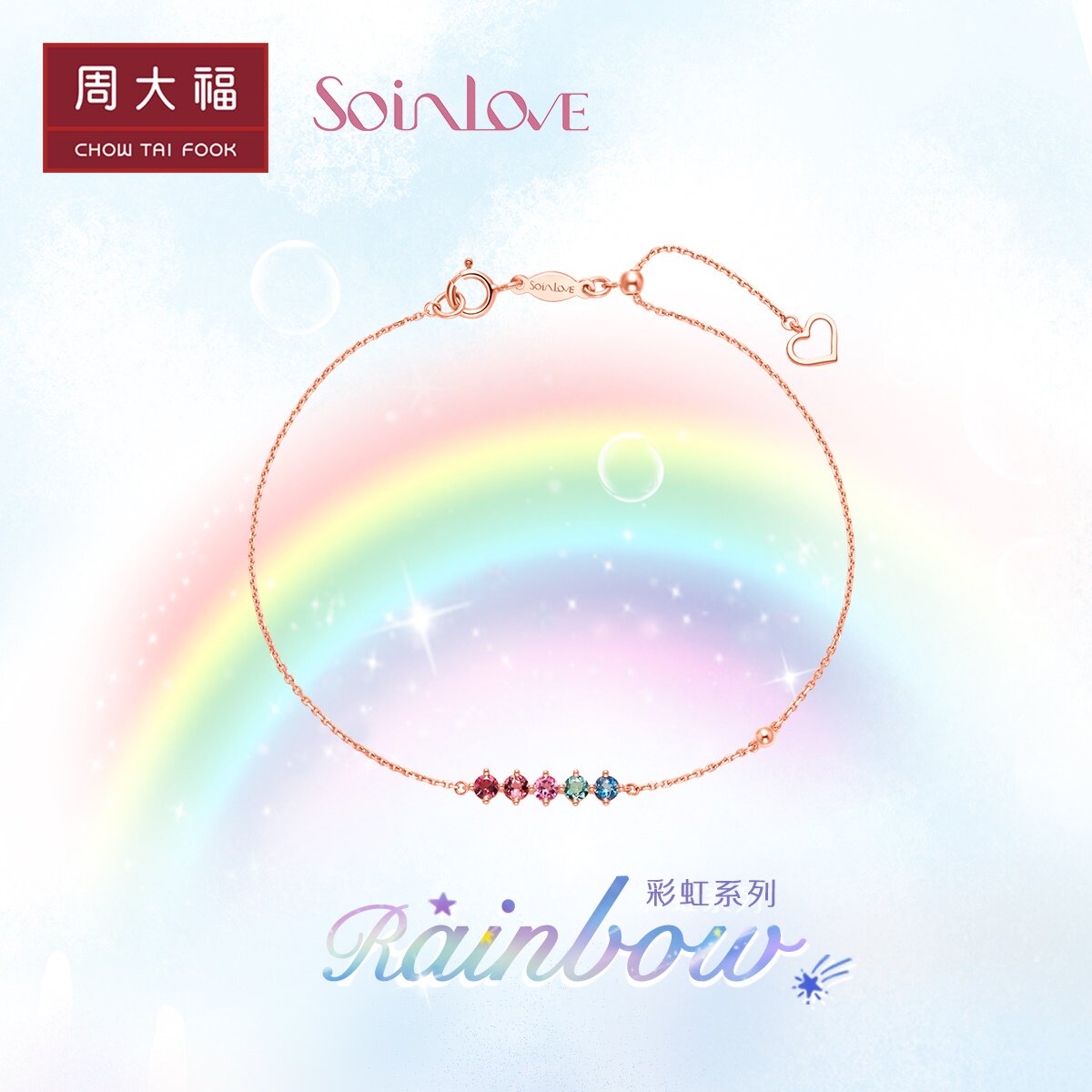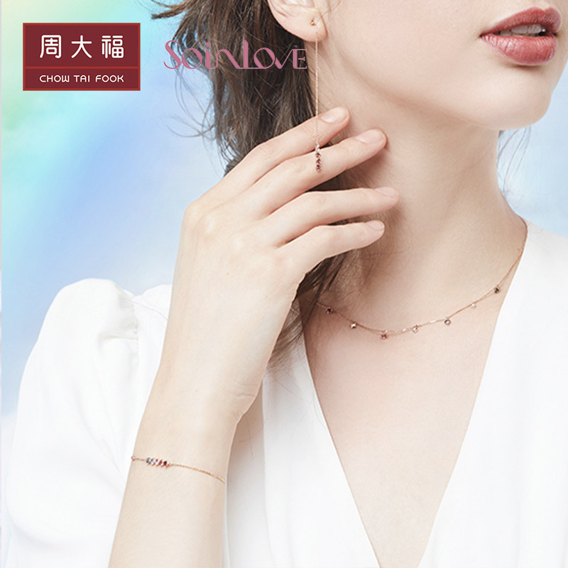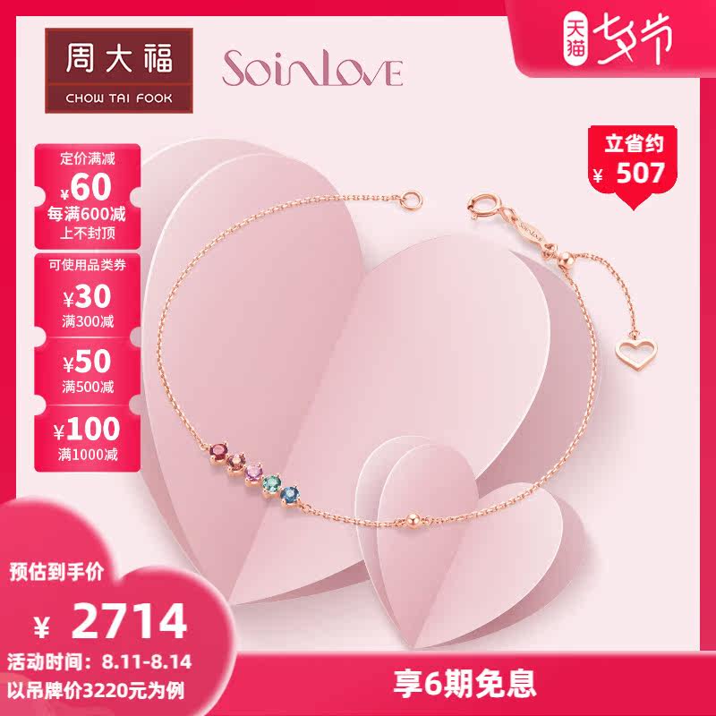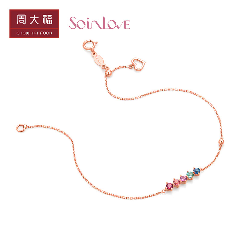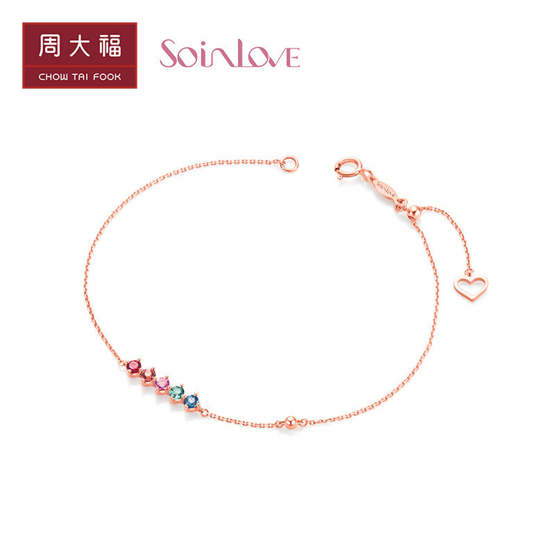 周大福 Радужный золотой турмалиновый браслет из натурального камня, золото 18 карат, розовое золото, с драгоценным камнем
