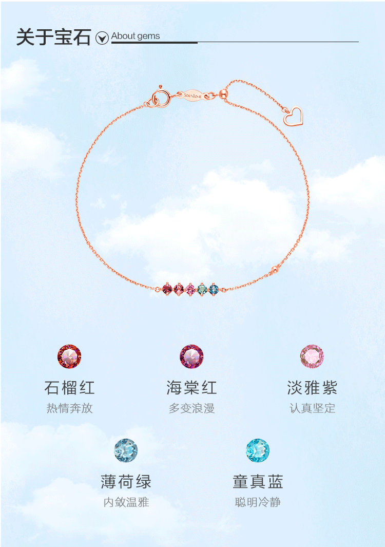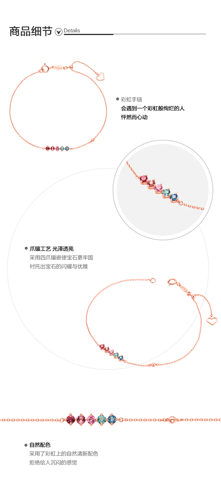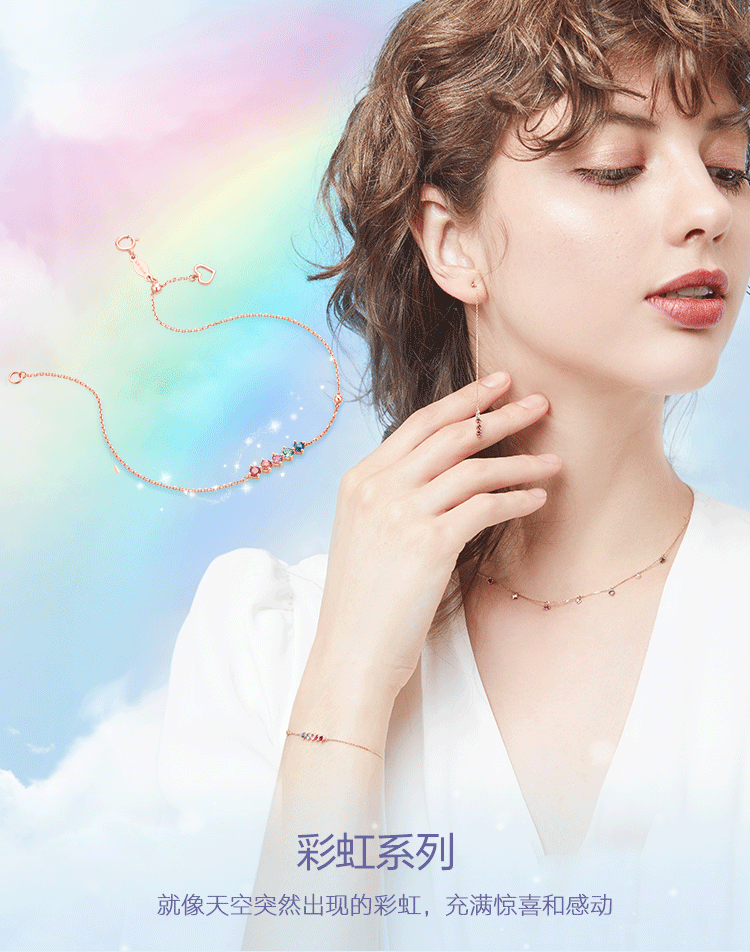 周大福 Радужный золотой турмалиновый браслет из натурального камня, золото 18 карат, розовое золото, с драгоценным камнем