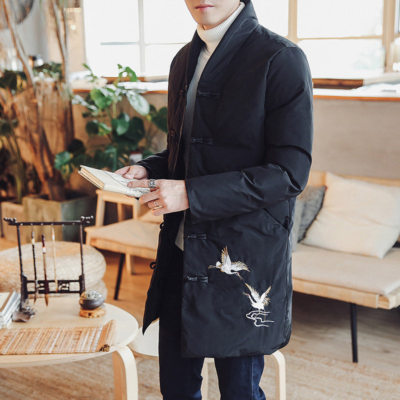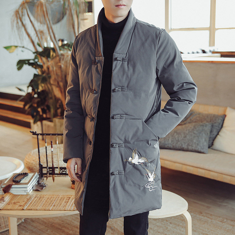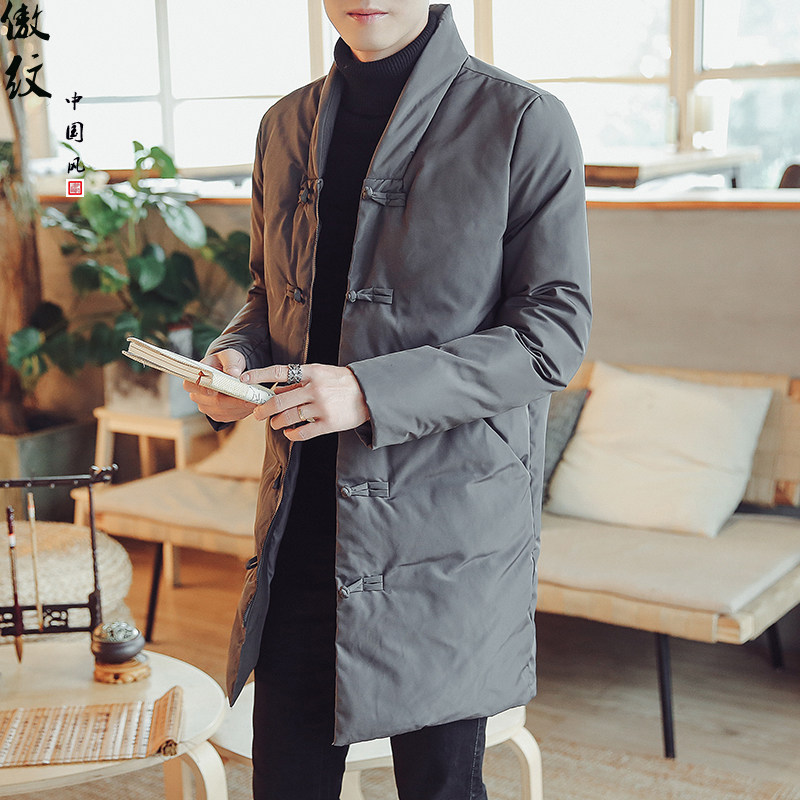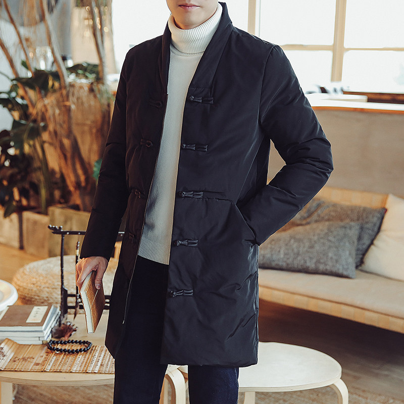 Длинная зимняя ретро куртка, китайский стиль, средней длины, большой размер