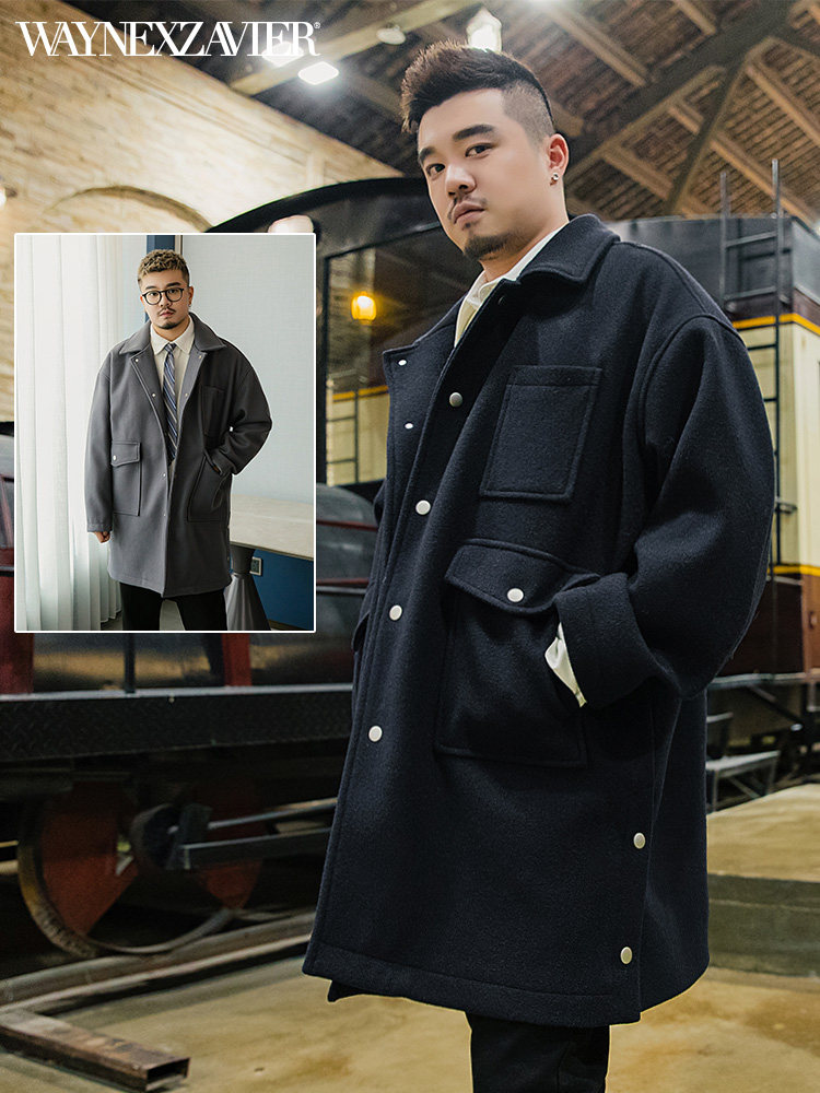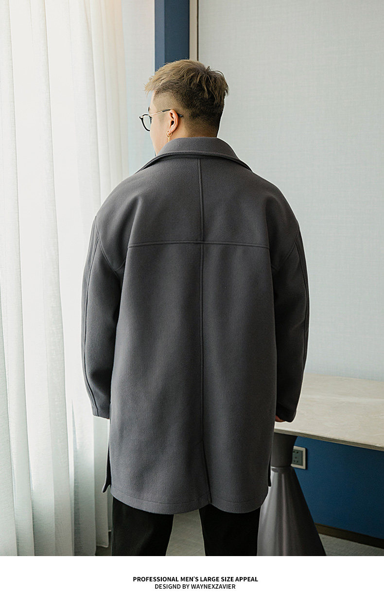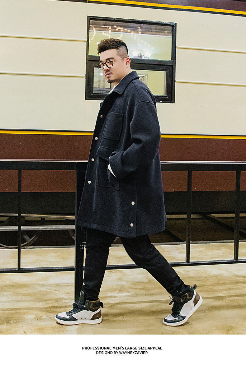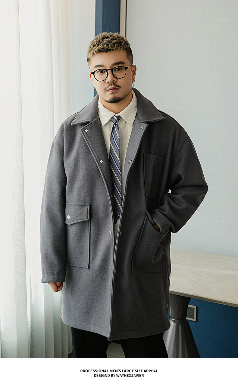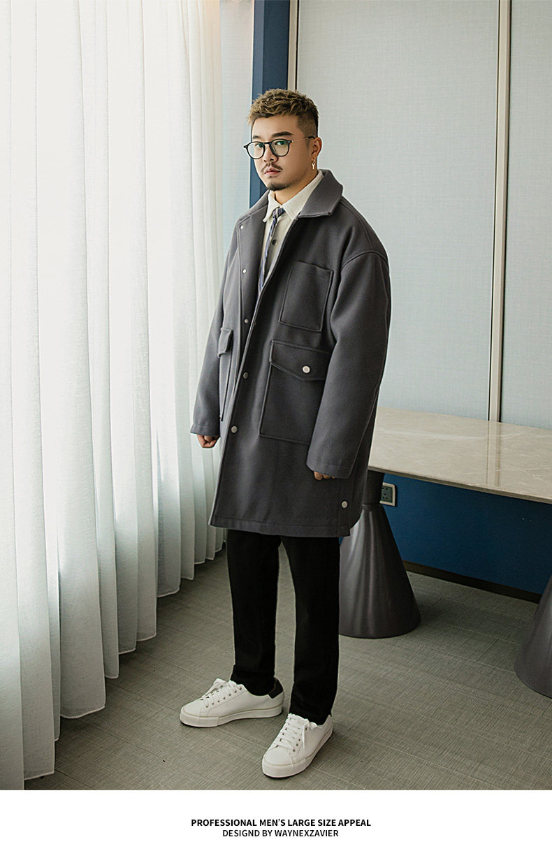 Осеннее длинное шерстяное пальто, большой размер, свободный крой, средней длины