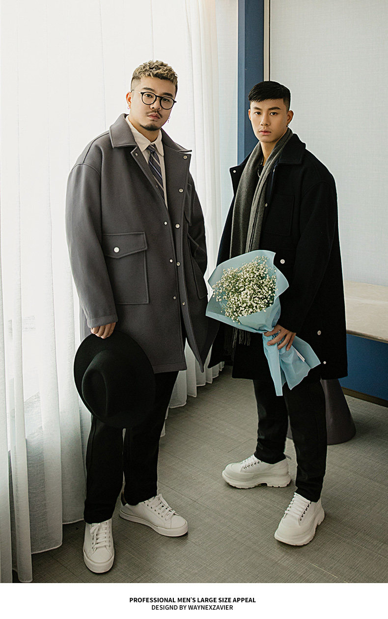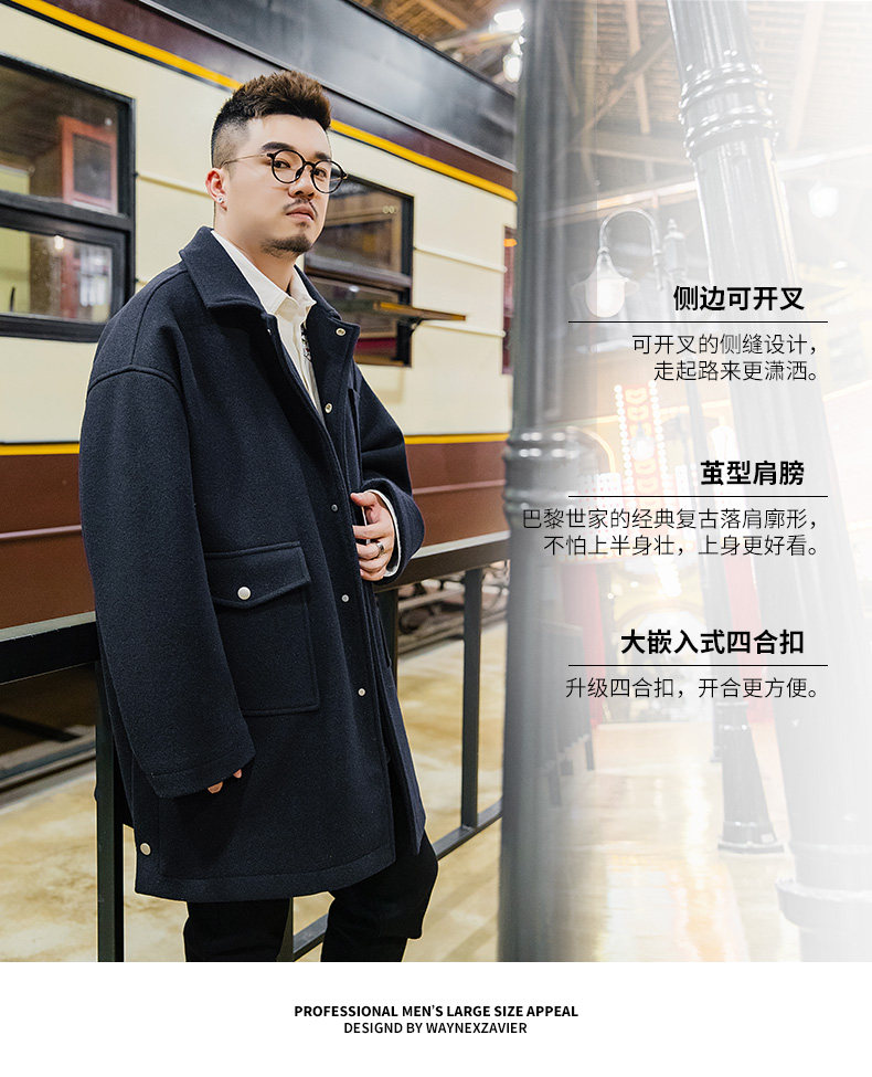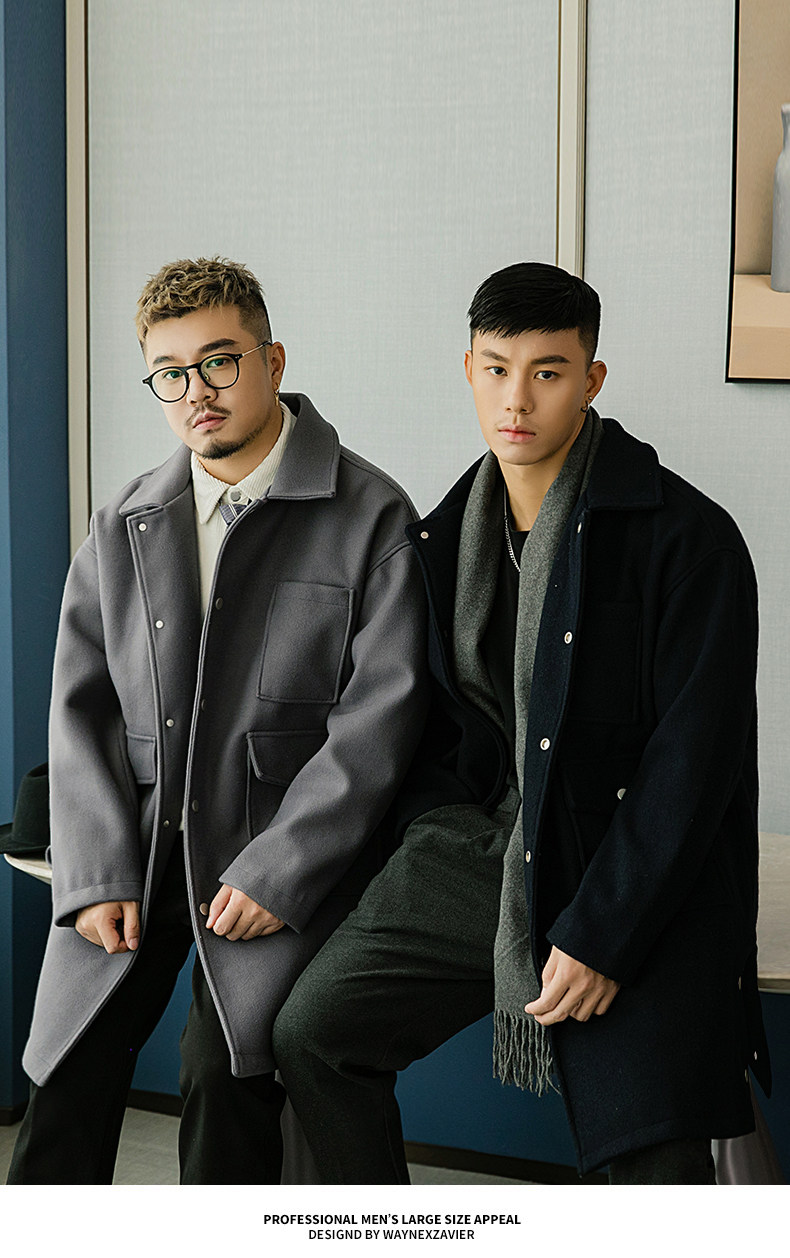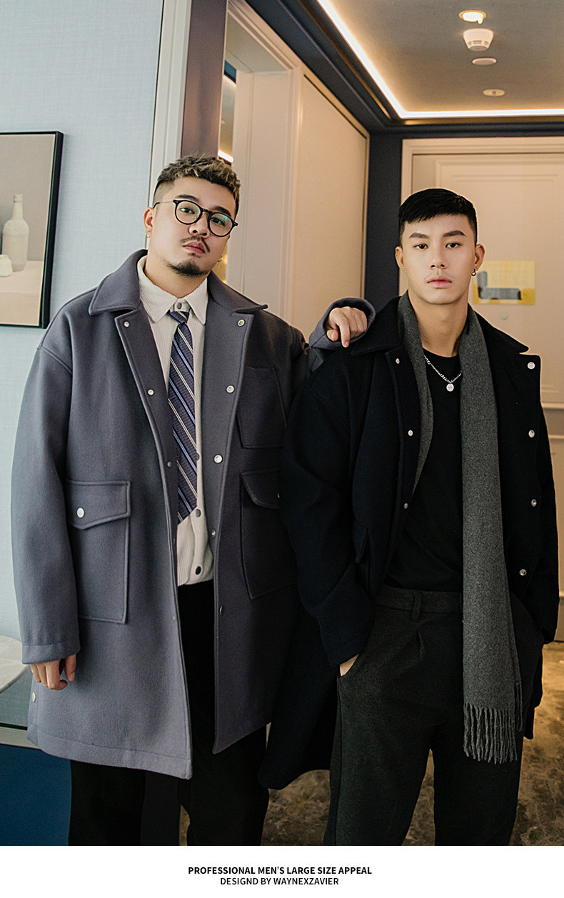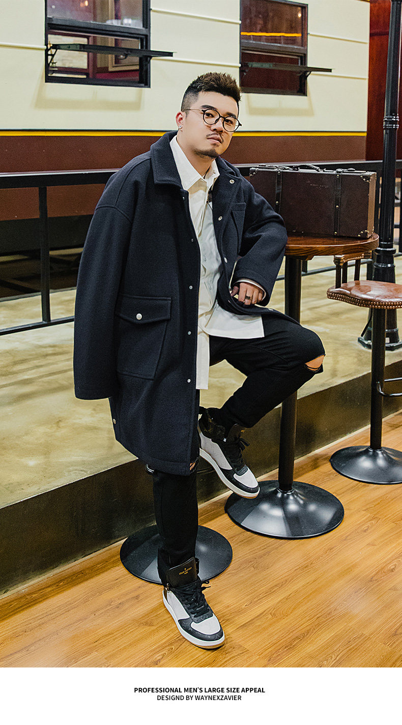 Осеннее длинное шерстяное пальто, большой размер, свободный крой, средней длины
