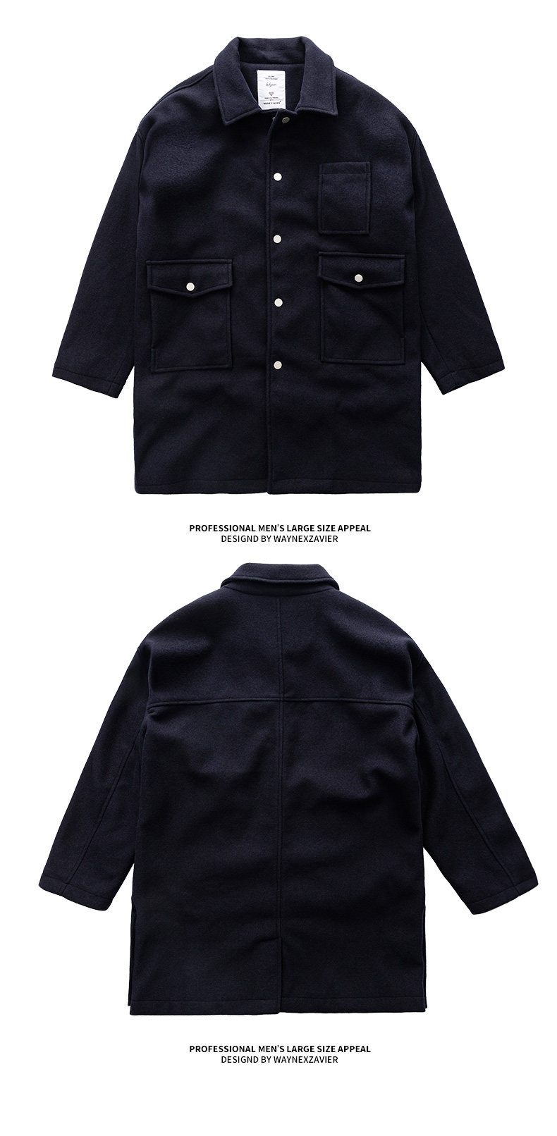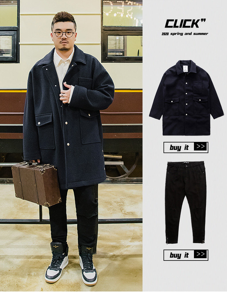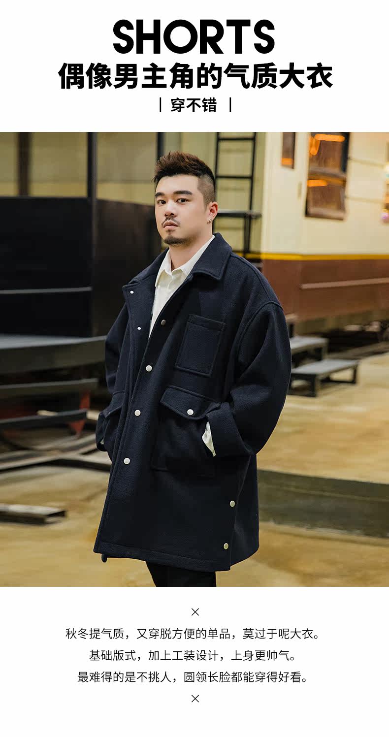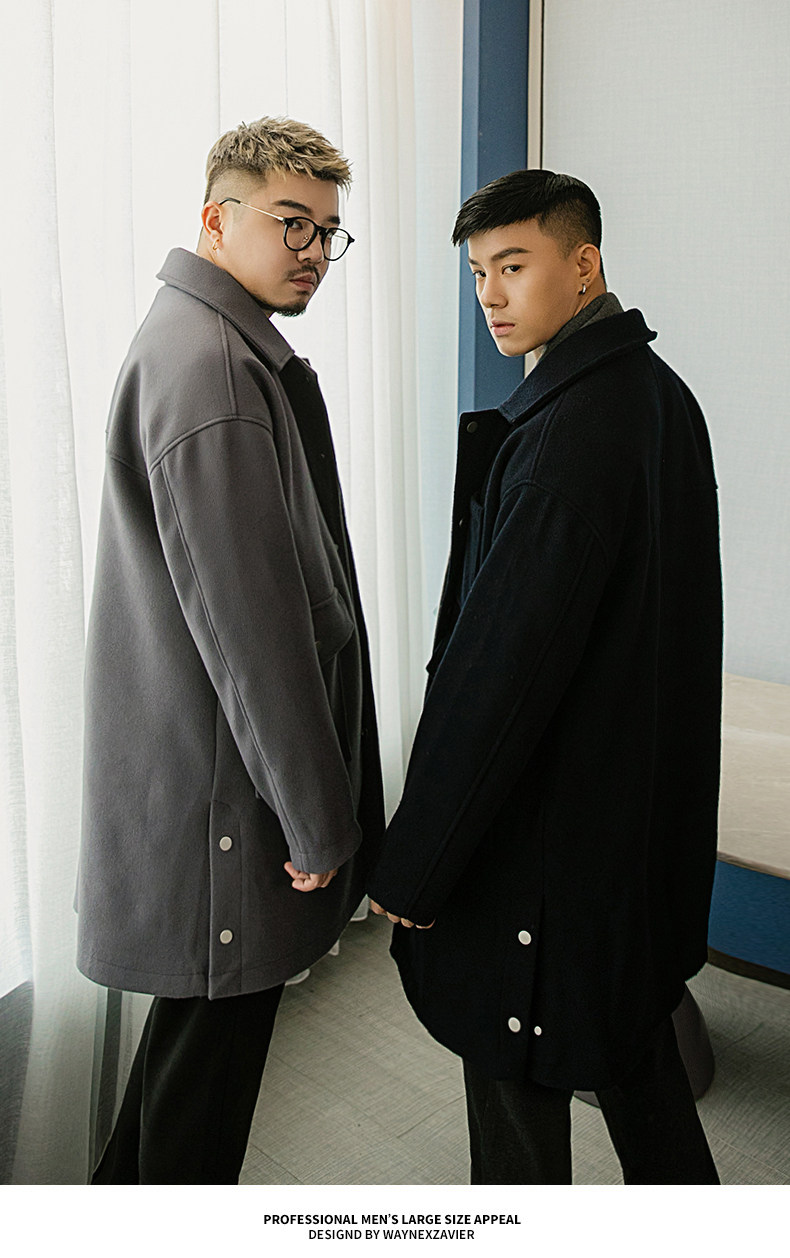 Осеннее длинное шерстяное пальто, большой размер, свободный крой, средней длины