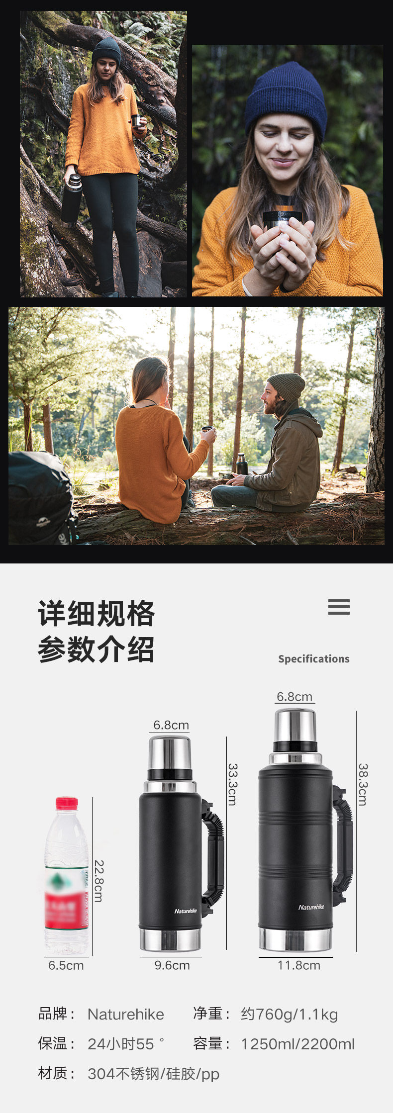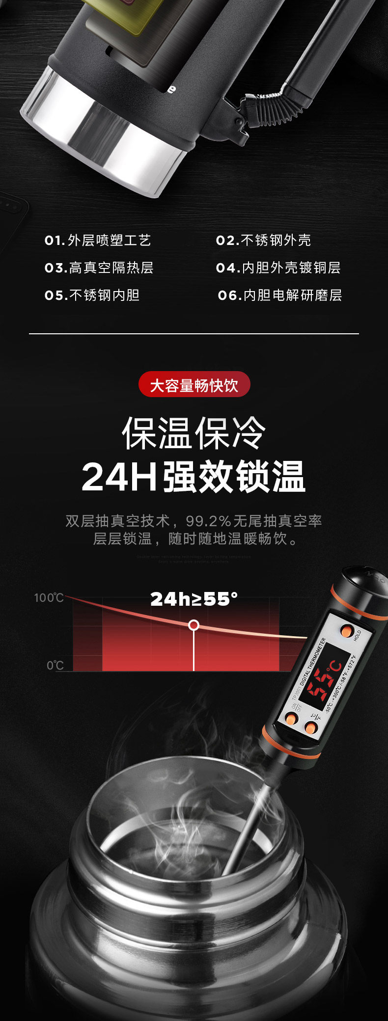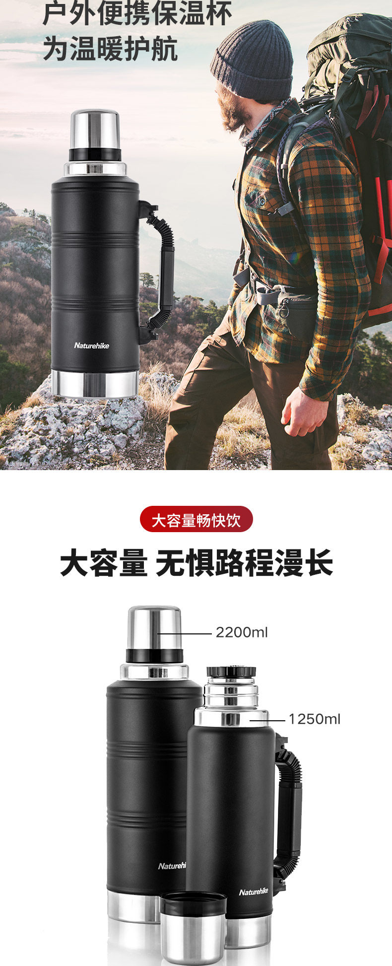 Портативный стакан из нержавеющей стали, вместительный и большой чайник для путешествий подходит для мужчин и женщин, нержавеющая сталь AISI 304