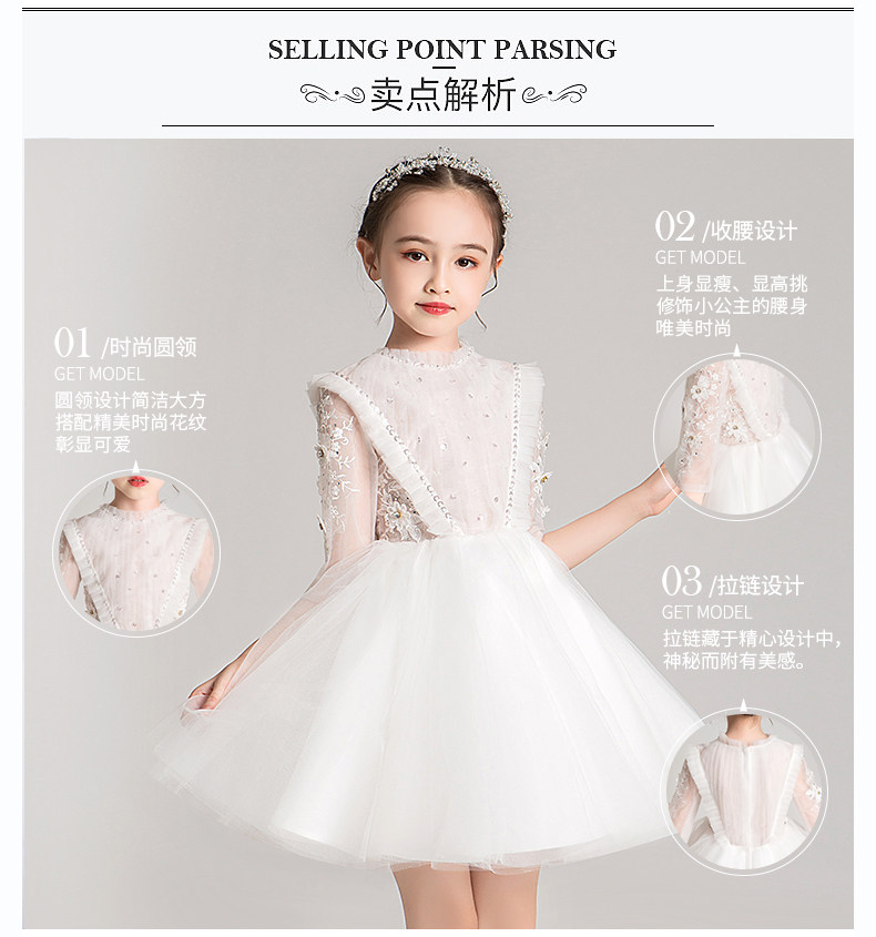 Белое свадебное платье, наряд маленькой принцессы, наряд для музыкальных выступлений, летний лонгслив, в западном стиле