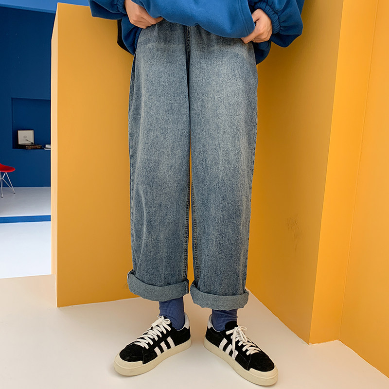 Ретро штаны для школьников и студентов, джинсы, высокая талия, большой размер, свободный прямой крой, подходит для полных девушек