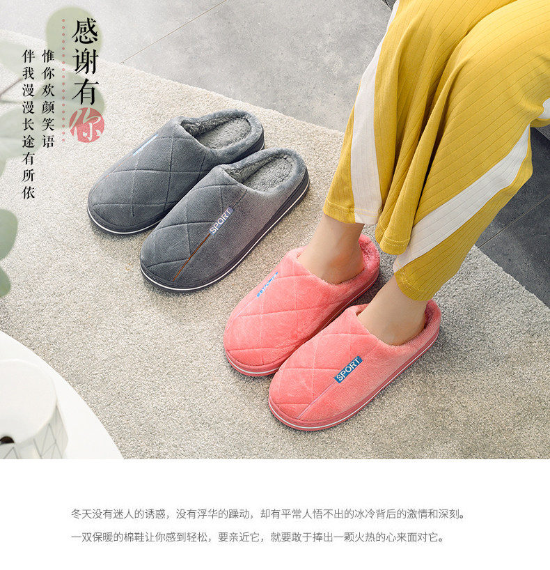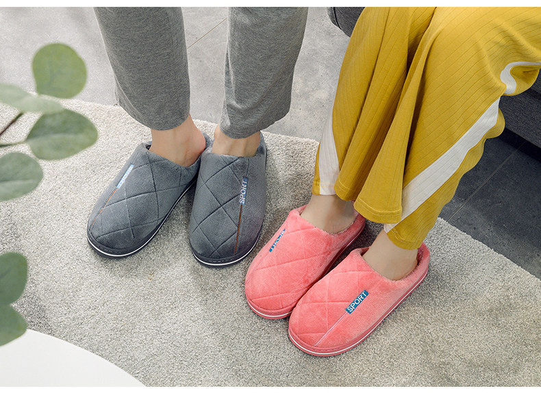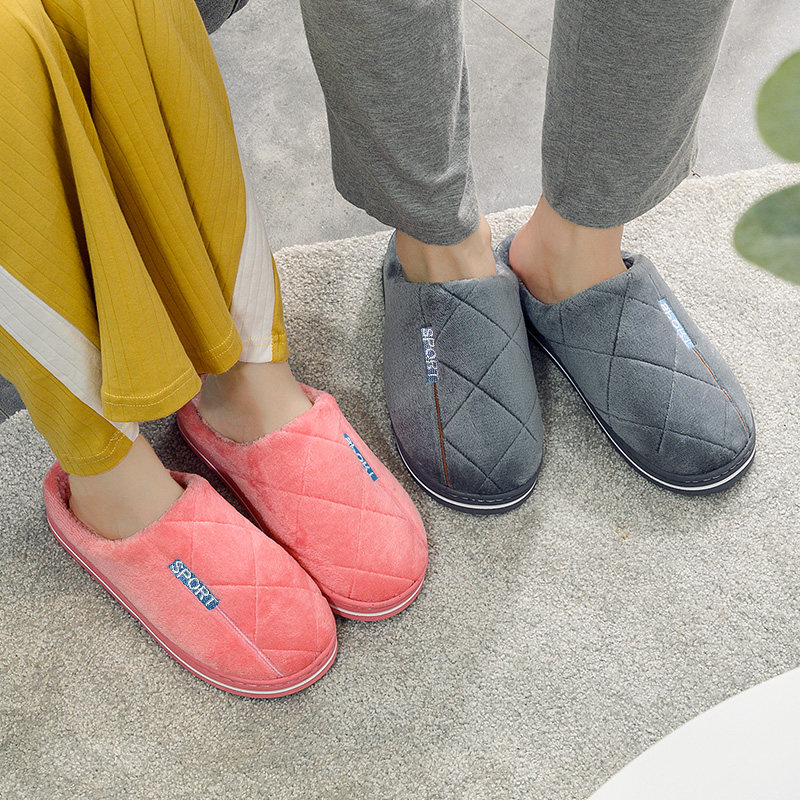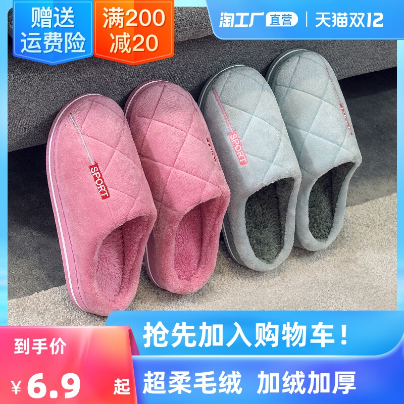 Тапочки, зимняя нескользящая мужская удерживающая тепло демисезонная обувь для влюбленных на платформе, осенние