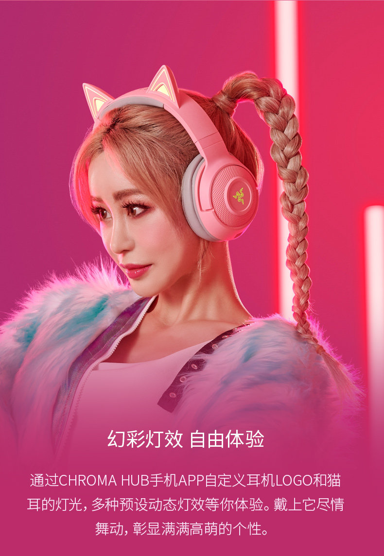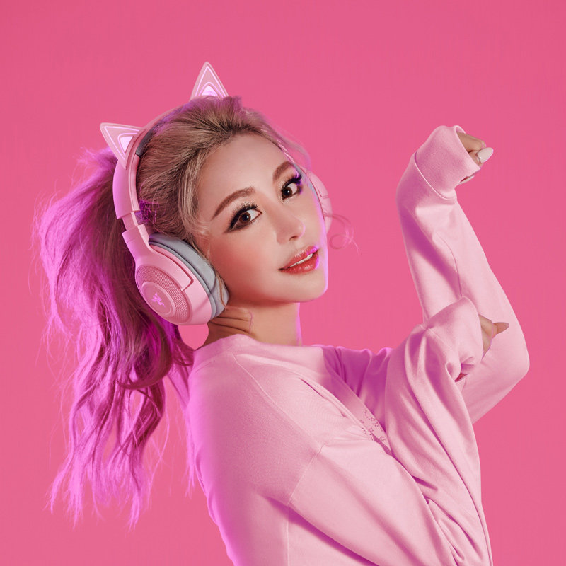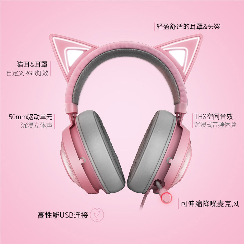Razer Razer Beihai Giant Demon Meng Cat V2 Профессиональная версия Pink Crystal Wired Hearset Game Hearset Bluetooth Wireless