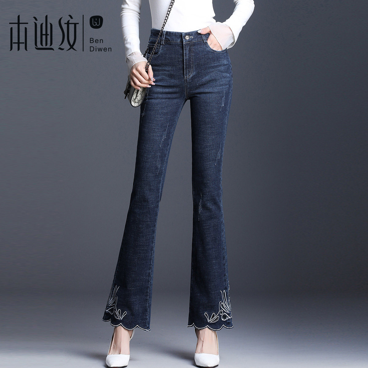 Джинсы, штаны-клёш, осенние штаны, 2019, крой «рыбий хвост», по фигуре