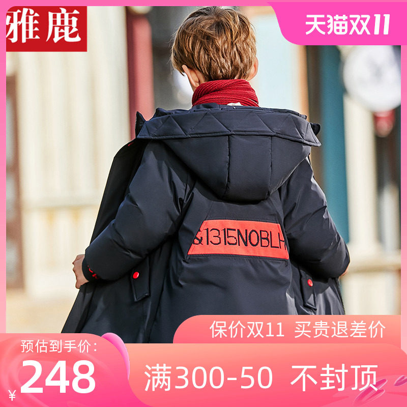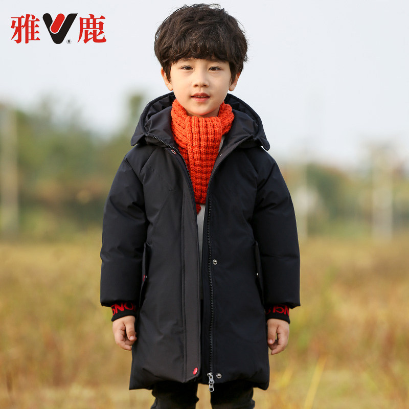 Детский пуховик для мальчиков, длинная мужская куртка, детская одежда, увеличенная толщина, подходит для подростков, средней длины