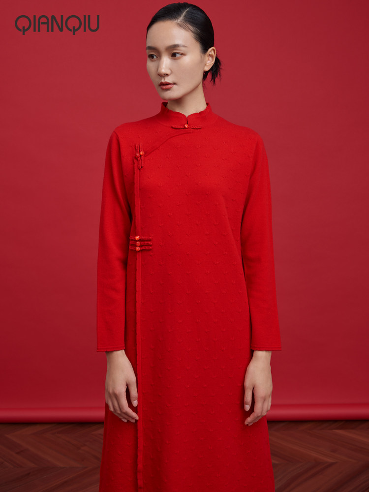 浅秋 Трикотажное платье, шерстяное ципао, 2020