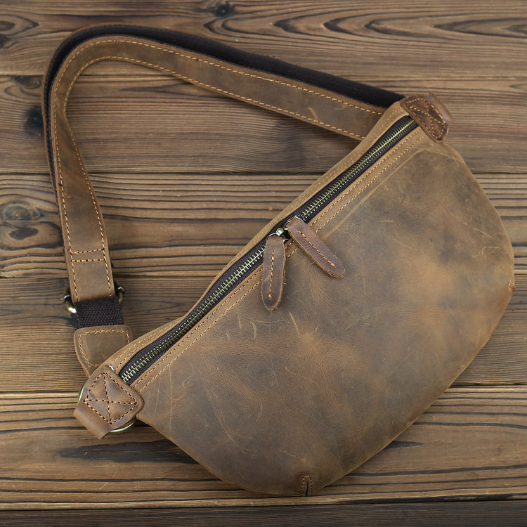 Кожаная ретро трендовая универсальная нагрудная сумка, сумка на одно плечо, сумка через плечо, рюкзак для отдыха, поясная сумка, воловья кожа, из натуральной кожи