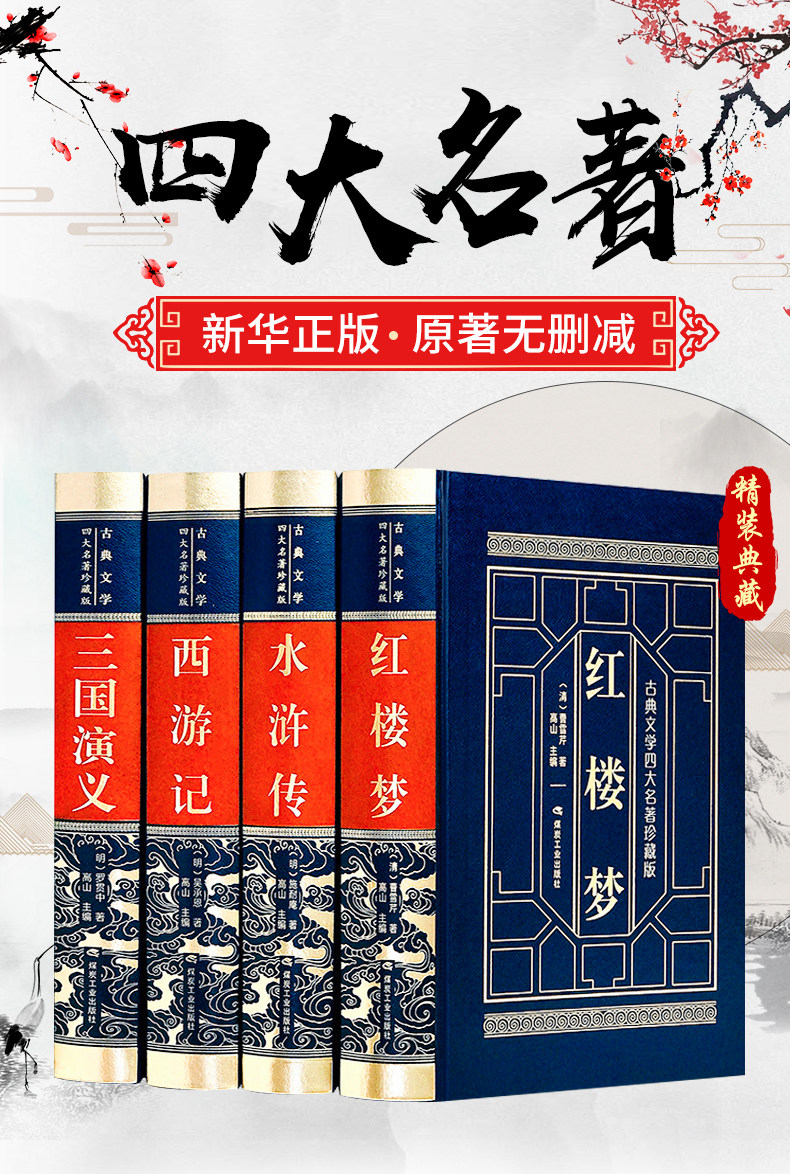 [Original No Deletion] Четыре известных книги Полные наборы оригинальной аутентичной несущественной удаленной копии, текстовая водяная маржа Red Build