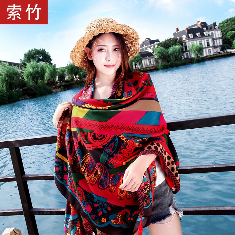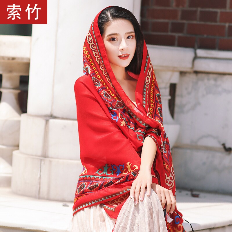 Пляжная длинная накидка, дорожный этнический красный плащ, защита от солнца, этнический стиль