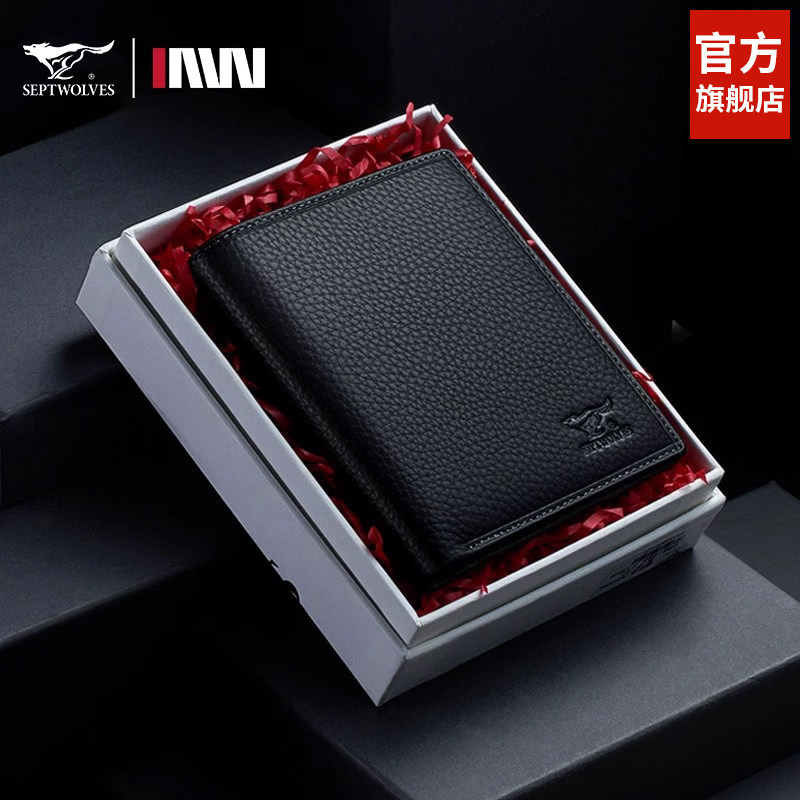 Septwolves, короткий кошелек, подарочная коробка, картхолдер, из натуральной кожи, подарок на день рождения