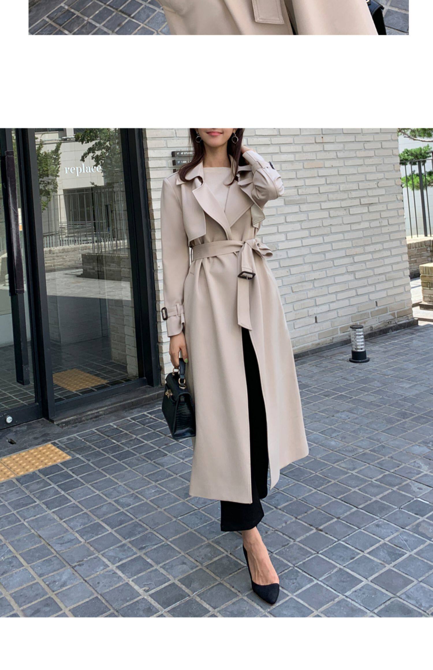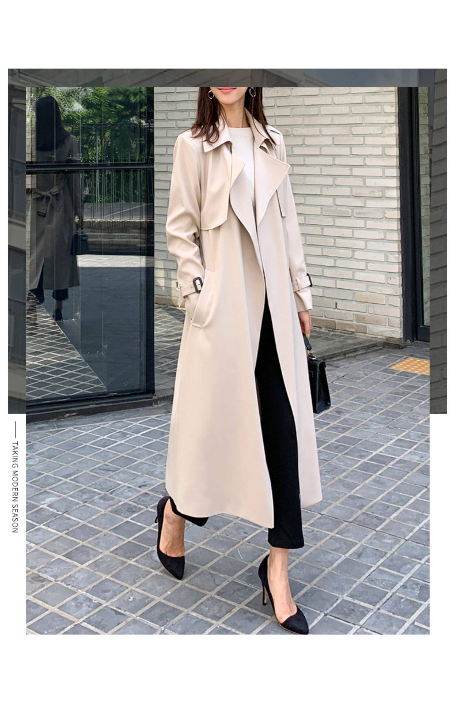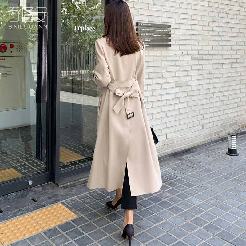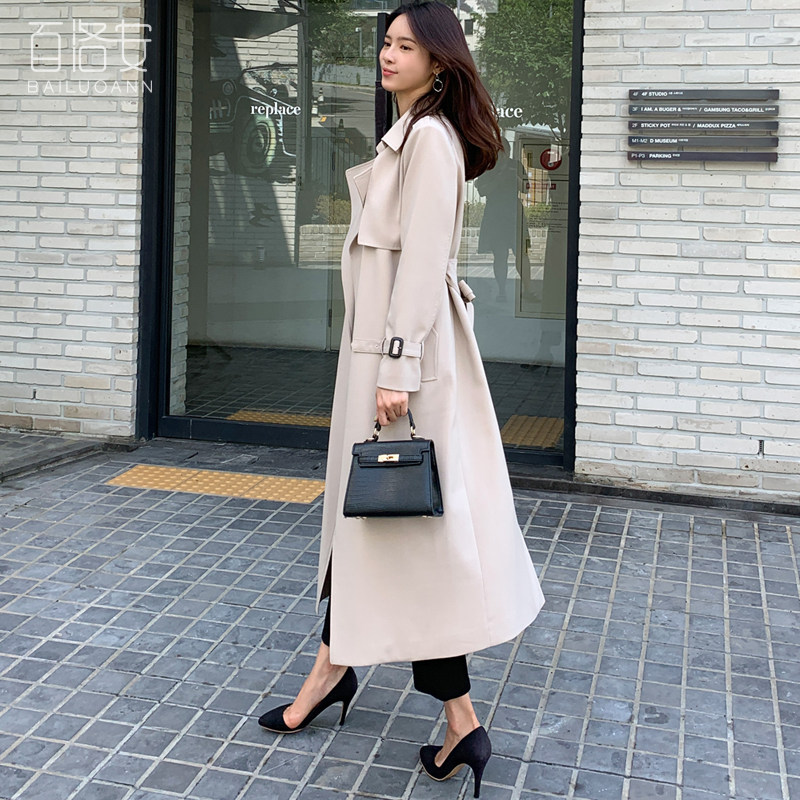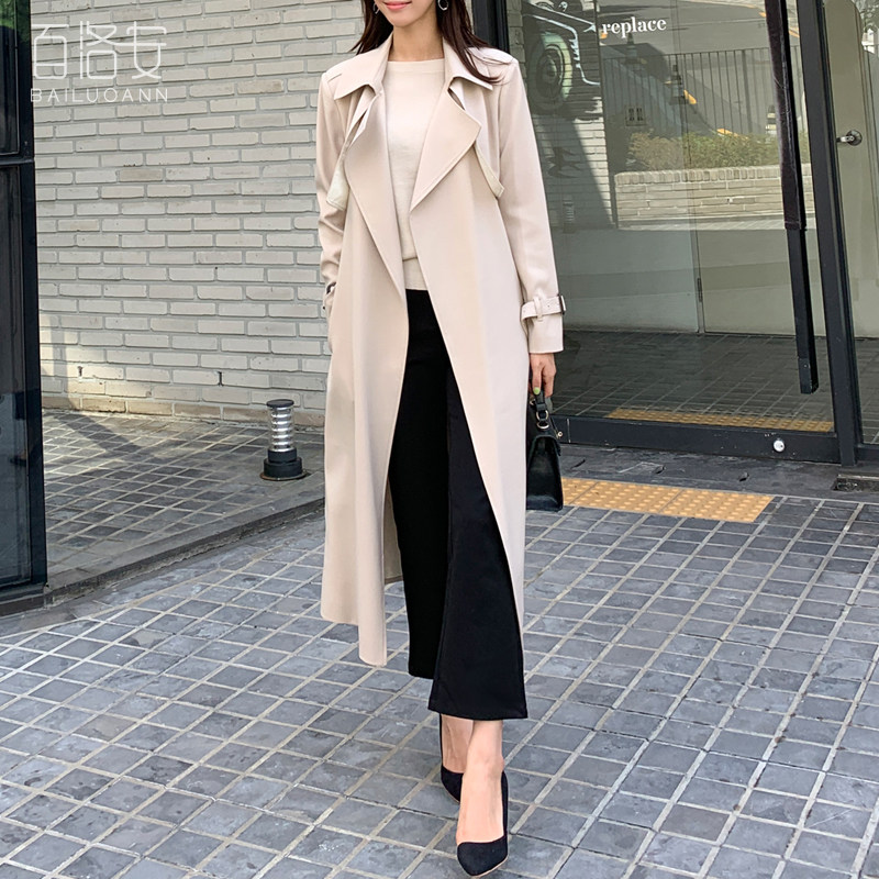 百洛安 Длинный демисезонный плащ, модное пальто, в корейском стиле, свободный крой, оверсайз