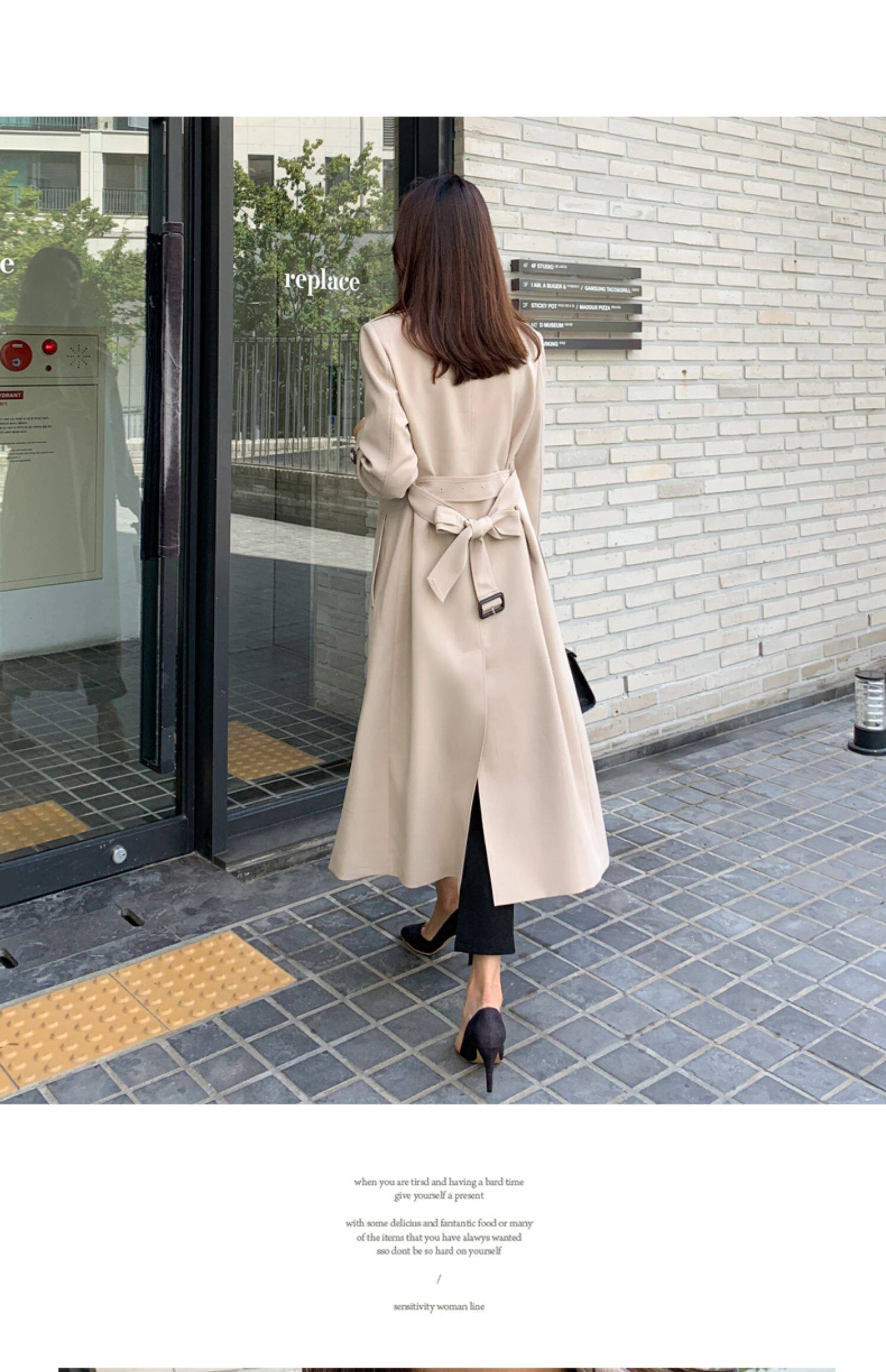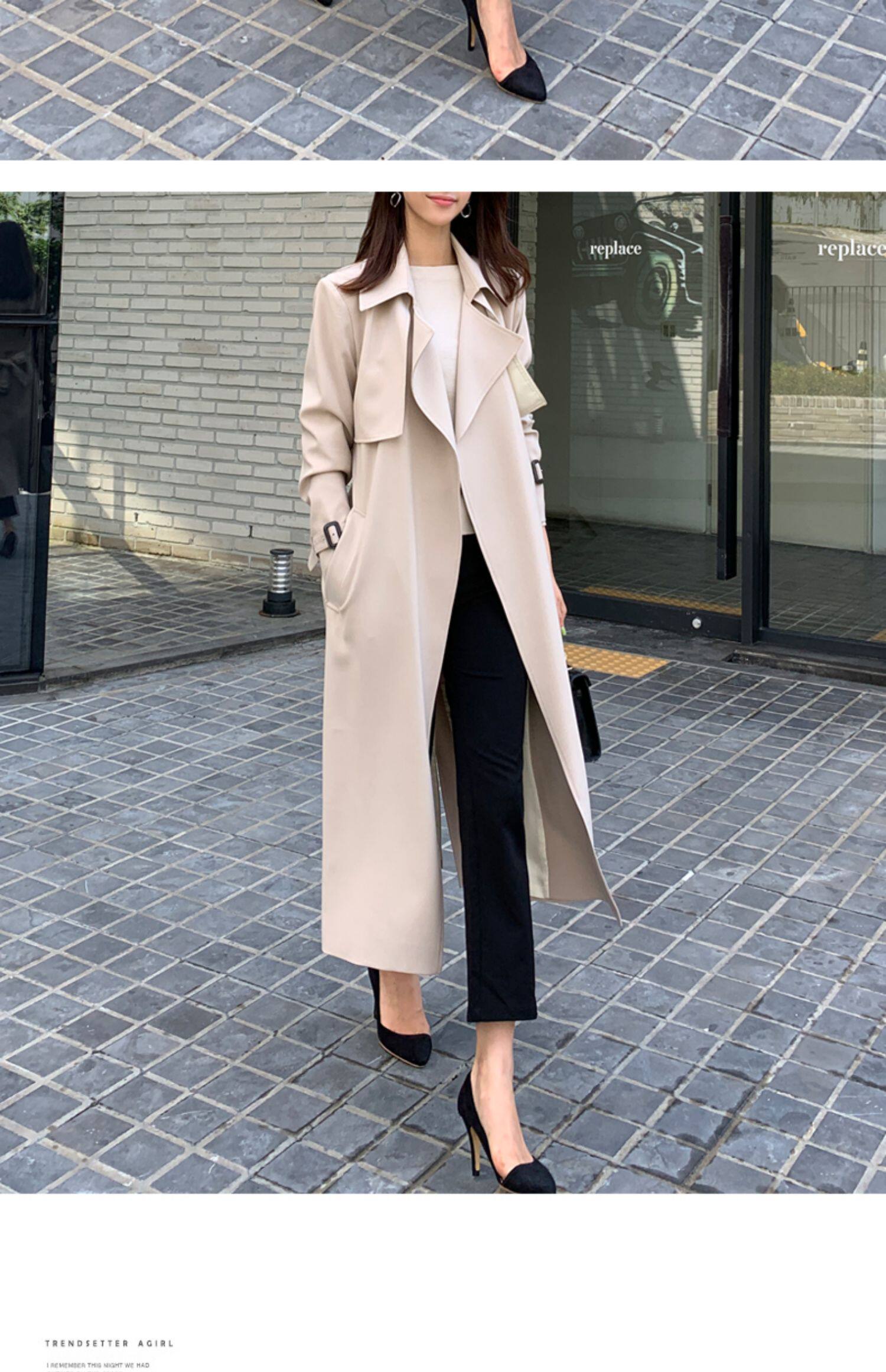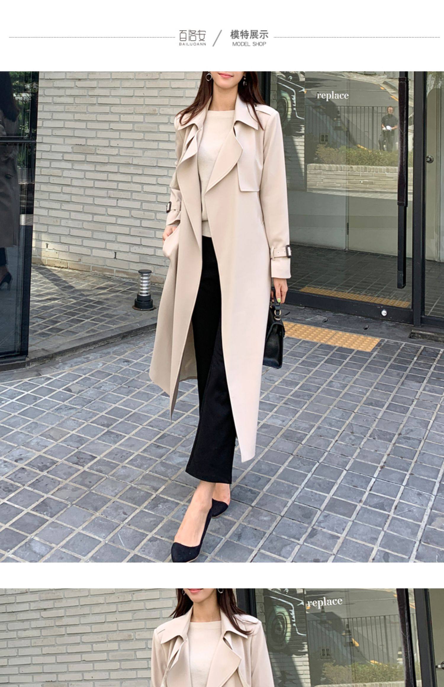 百洛安 Длинный демисезонный плащ, модное пальто, в корейском стиле, свободный крой, оверсайз