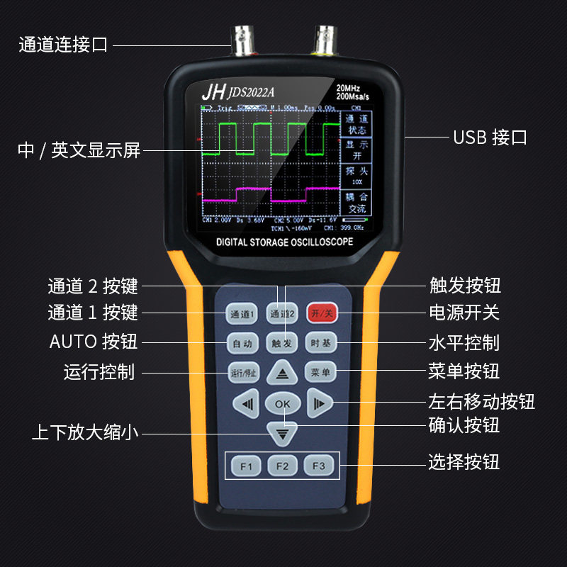 Jinhan JDS2022A Handheld Oscilloscope Universal Meter Auto Repair Двухканальный ремонт автомобилей Специальный дисплей таблетка волновая таблица