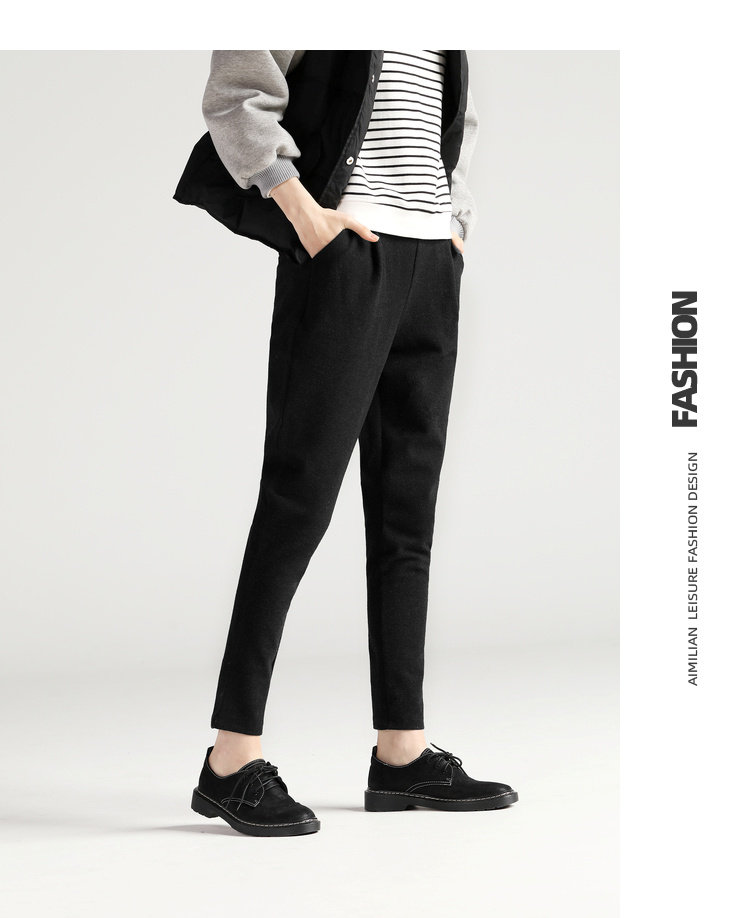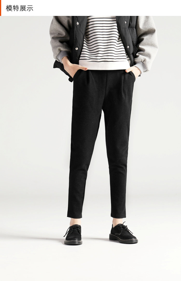 艾米恋 Шерстяные демисезонные штаны, черные леггинсы для отдыха, 2019, оверсайз, по фигуре