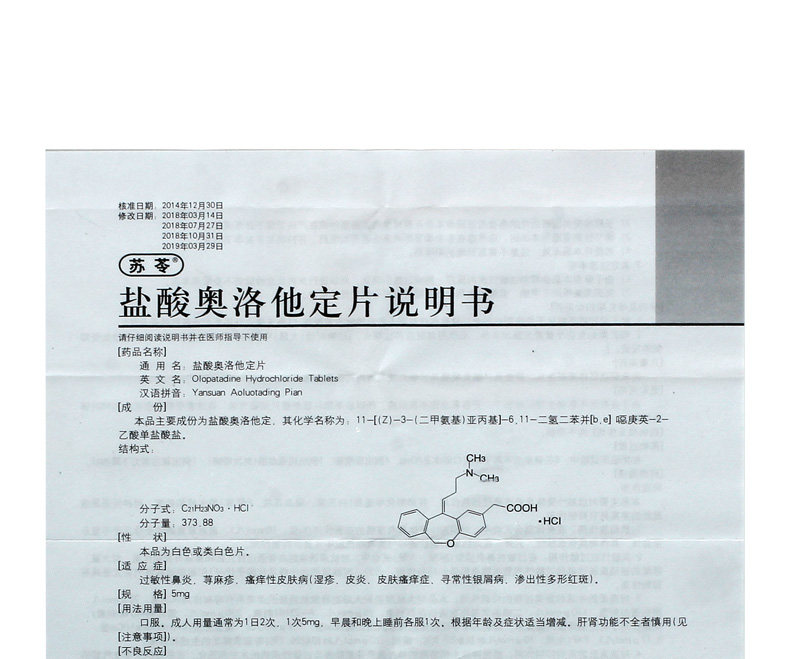 苏苓 Ооли гидрохлорид фиксированный таблетка 5 мг*14 таблетки/коробка псориаза Аллергический ринит дерматит дерматит кожа зуд
